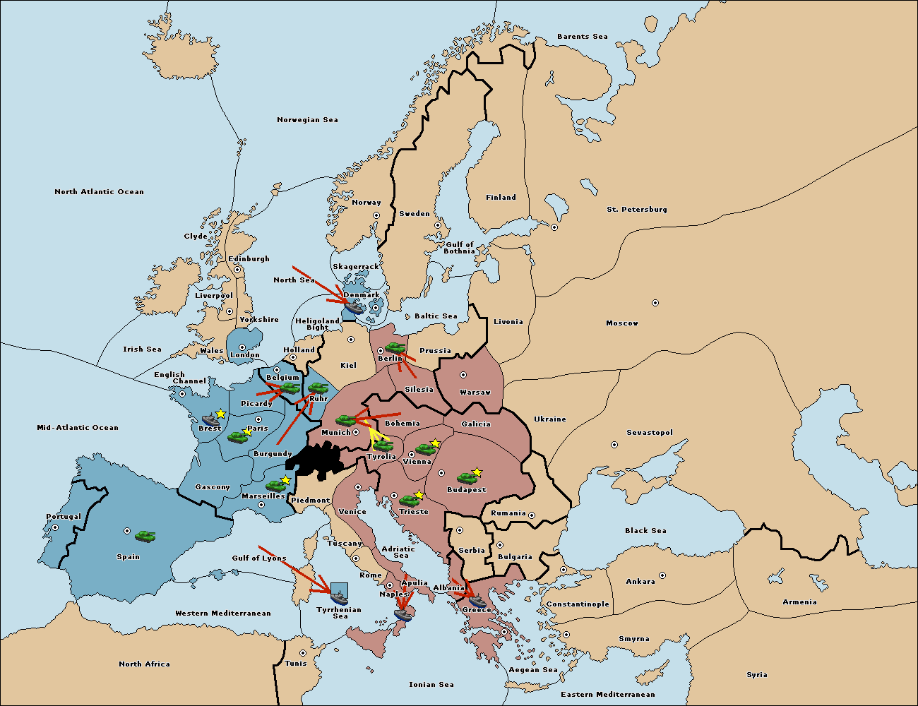The fleet at Mid-Atlantic Ocean move to Western Mediterranean.