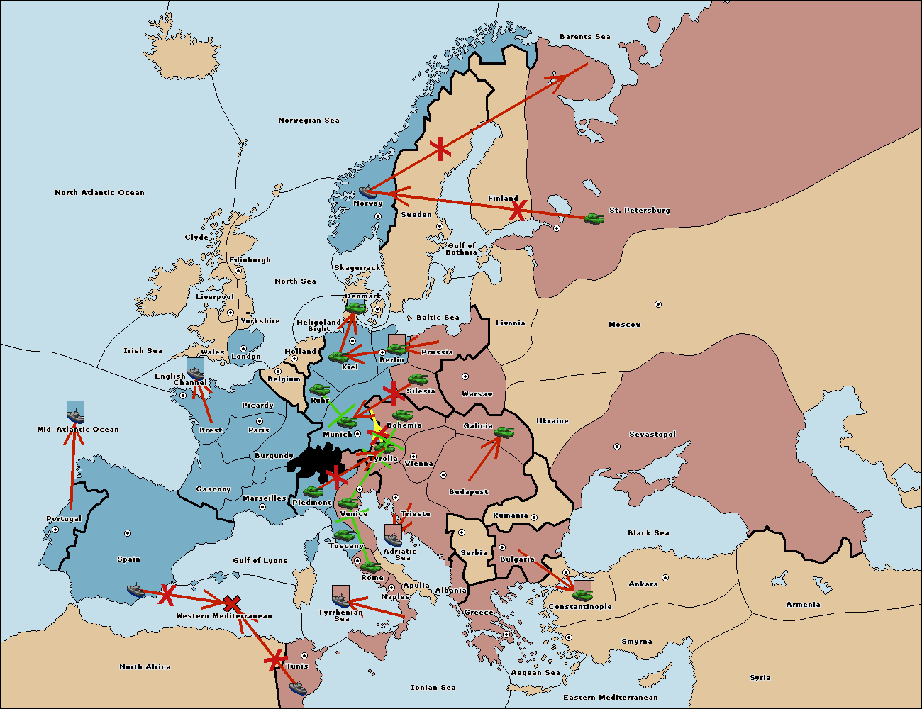 The fleet at Spain (South Coast) support move to Western Mediterranean from Mid-Atlantic Ocean.