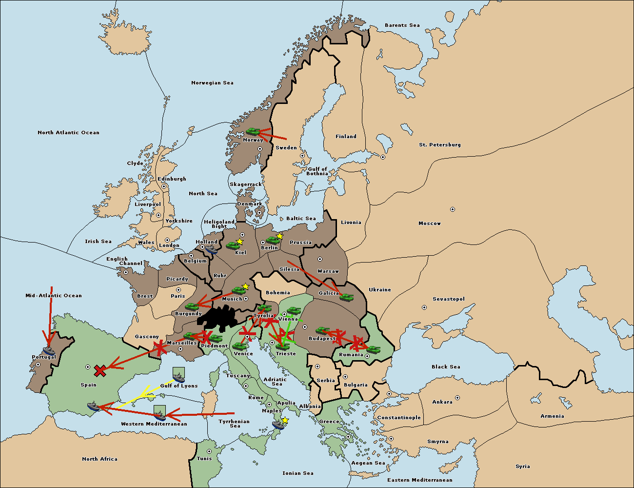 The fleet at Spain (South Coast) support hold to Marseilles.