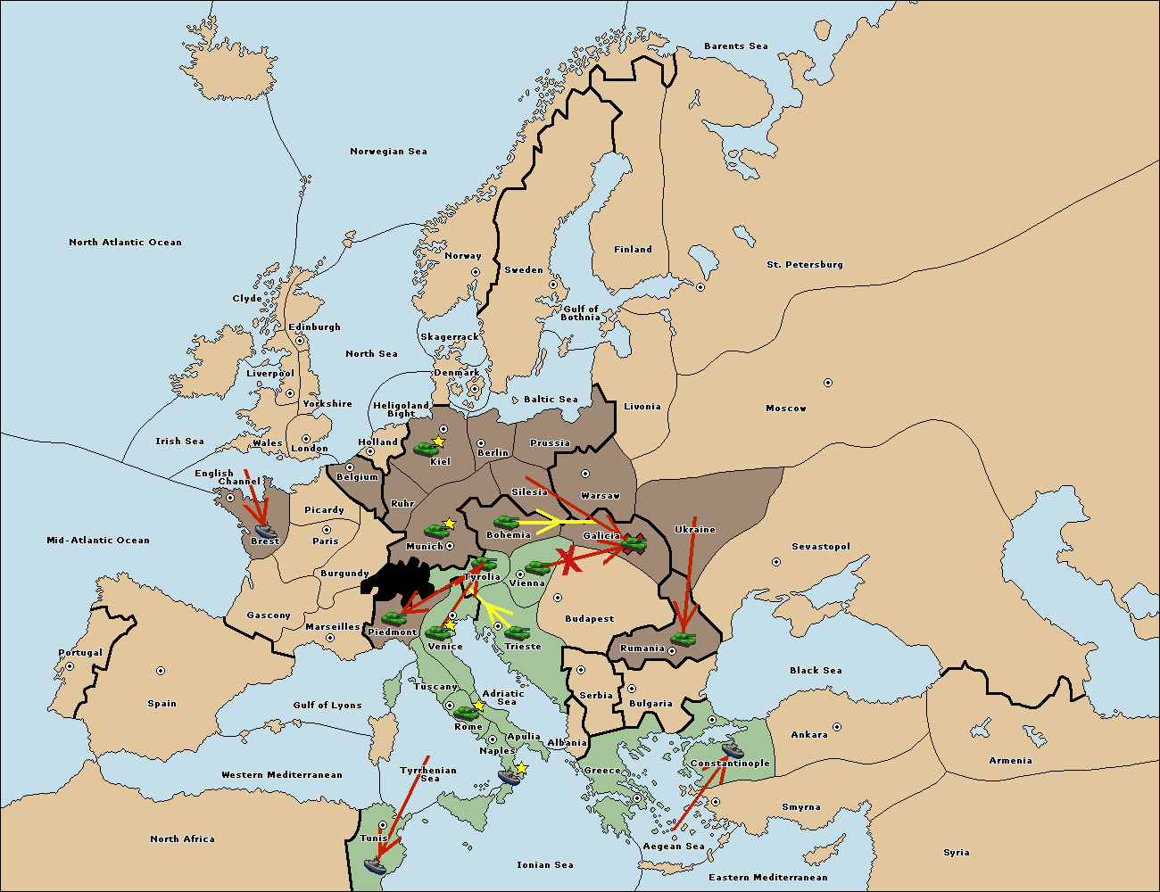 The army at Tyrolia move to Trieste.