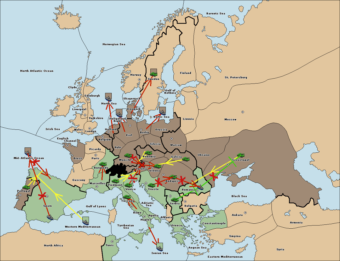 The army at Tyrolia move to Vienna.