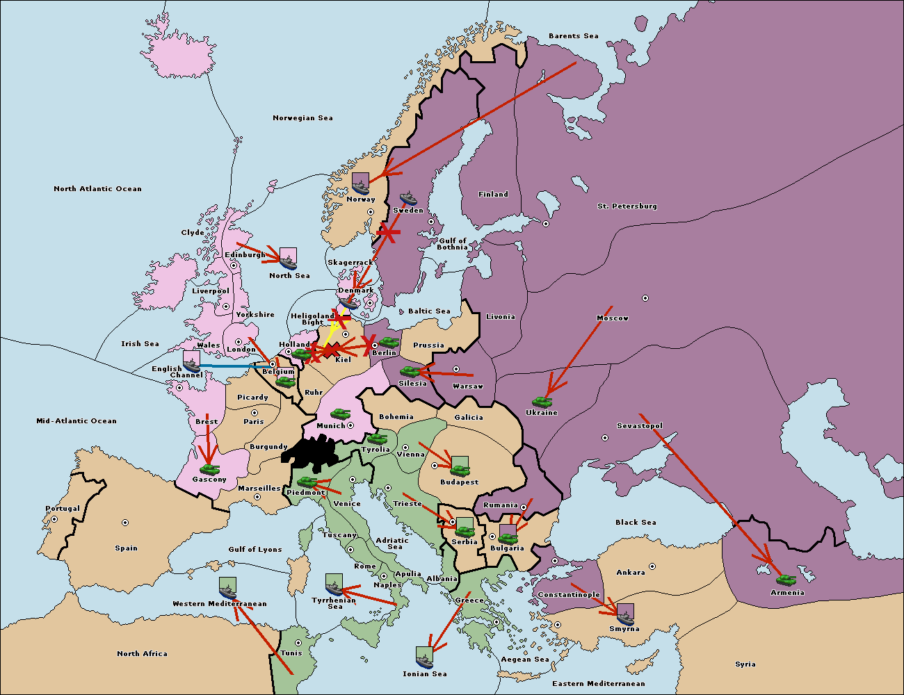 The fleet at Denmark support move to Kiel from Holland.