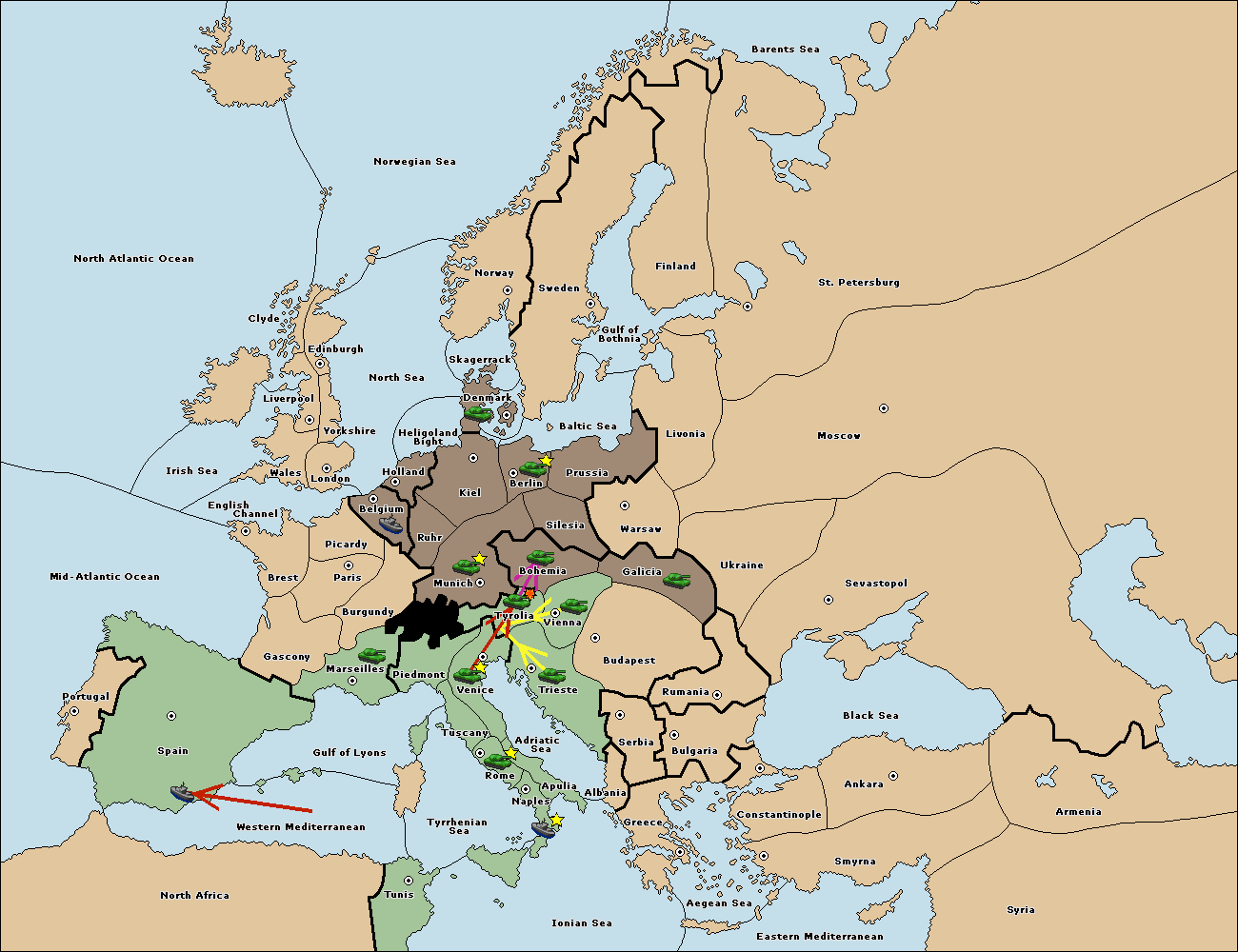 The fleet at Spain (South Coast) move to Mid-Atlantic Ocean.