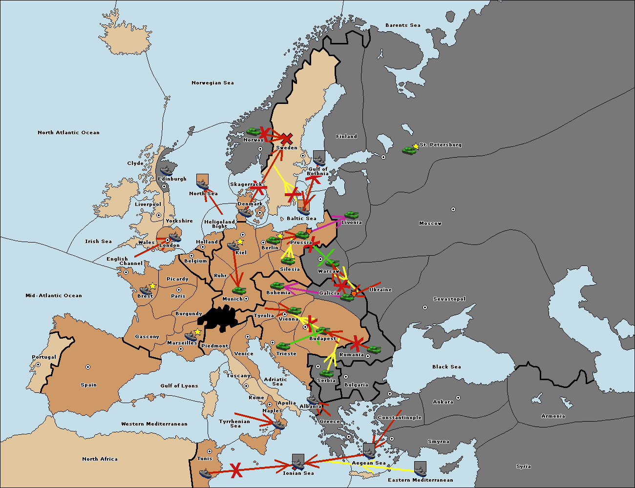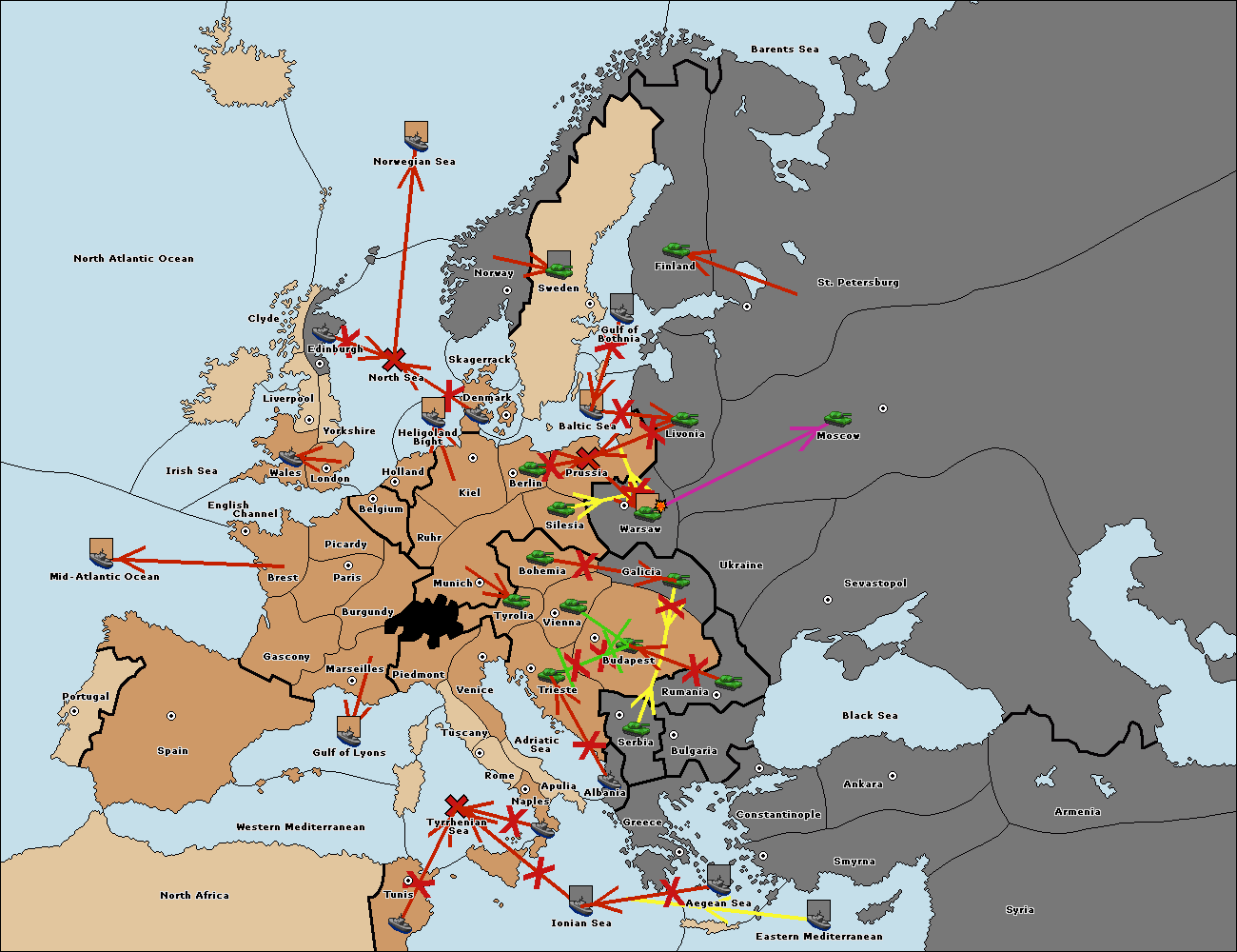 The fleet at Bulgaria (North Coast) move to Constantinople.