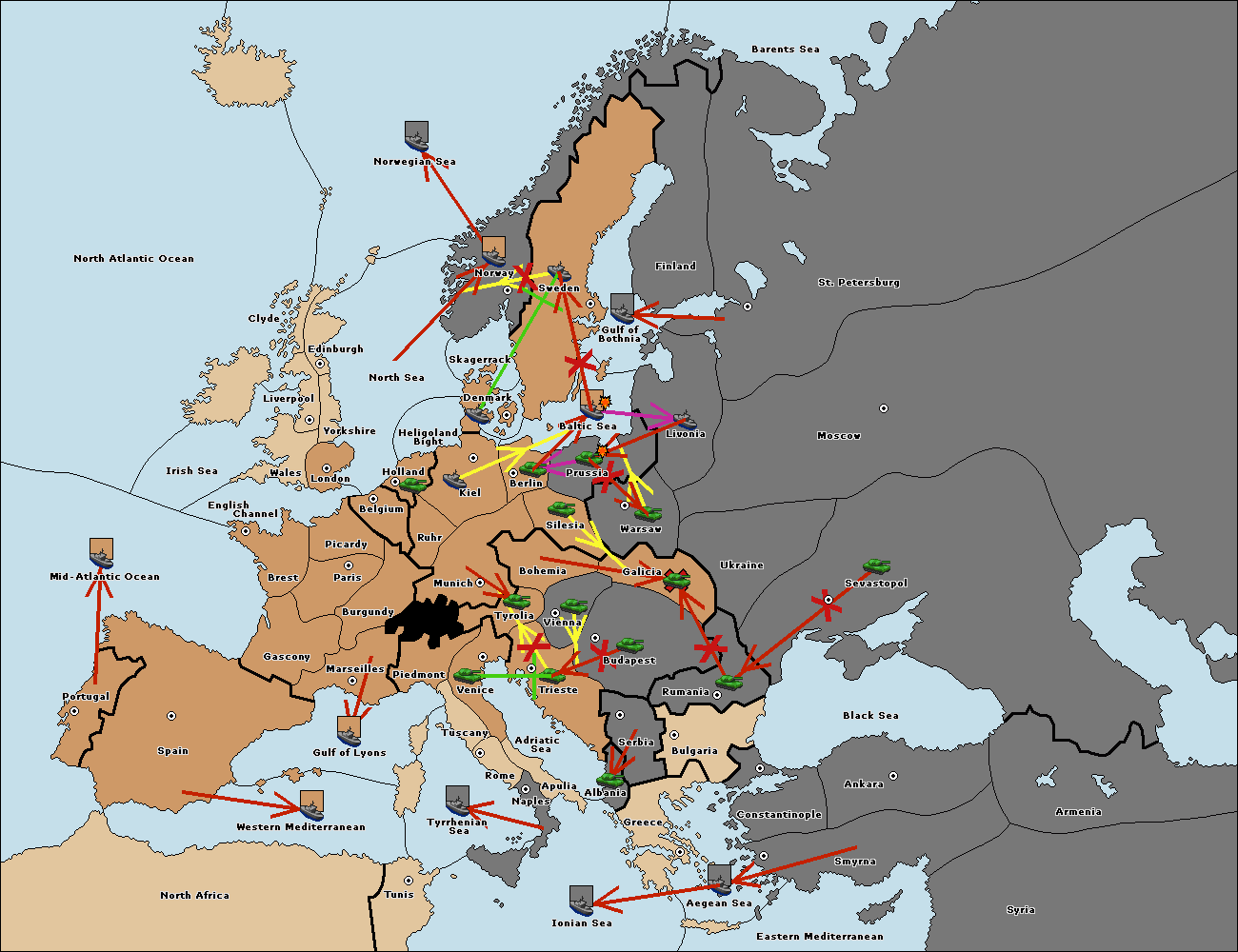 The fleet at St. Petersburg (South Coast) move to Livonia.