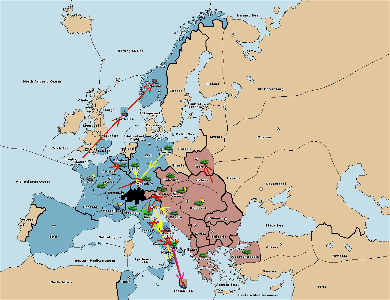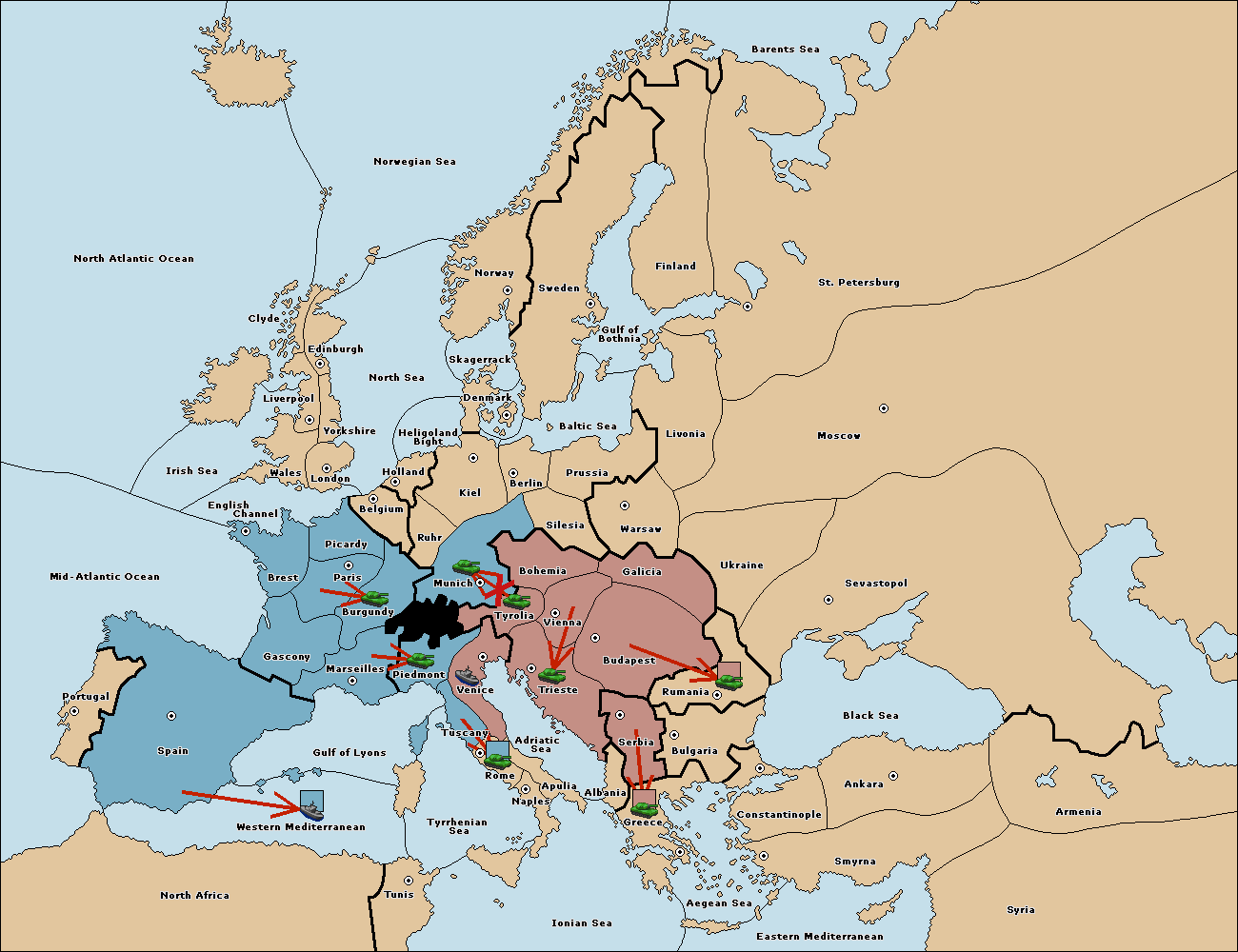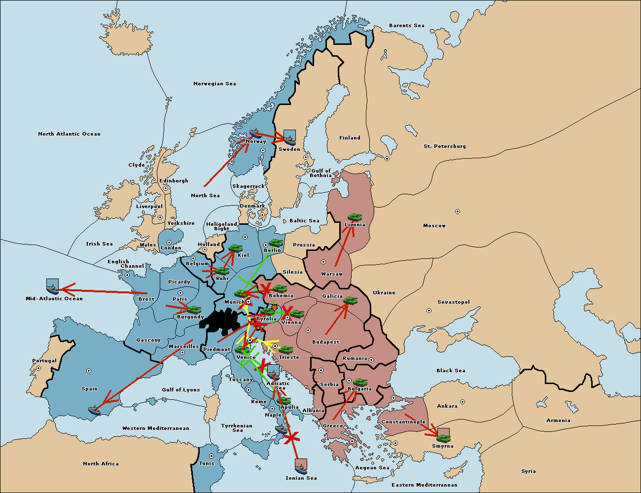 The fleet at Adriatic Sea support move to Trieste from Tyrolia.