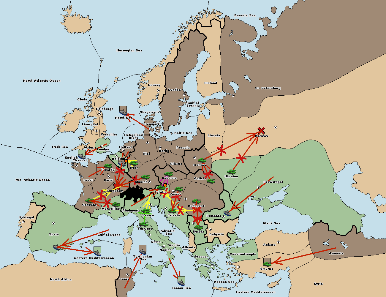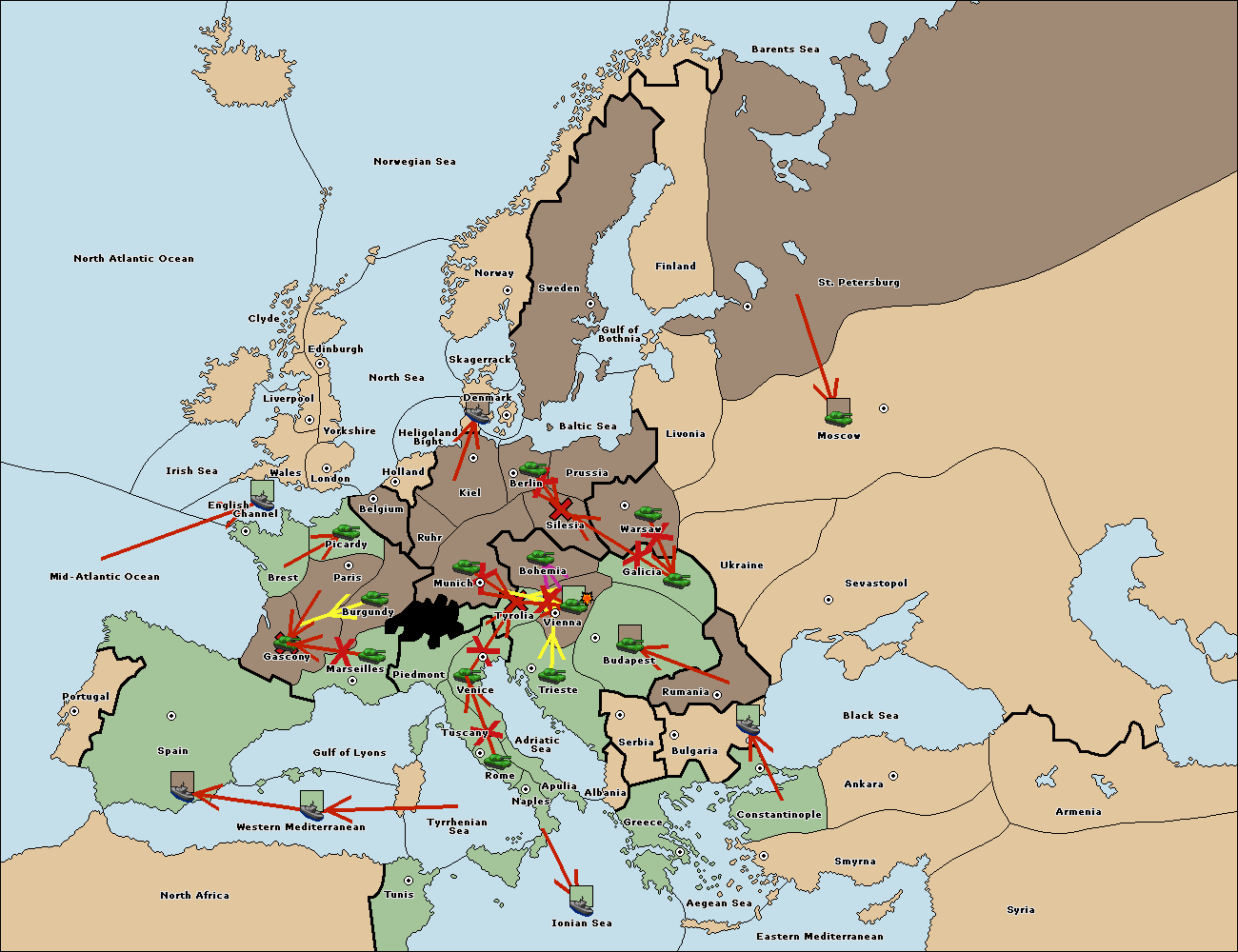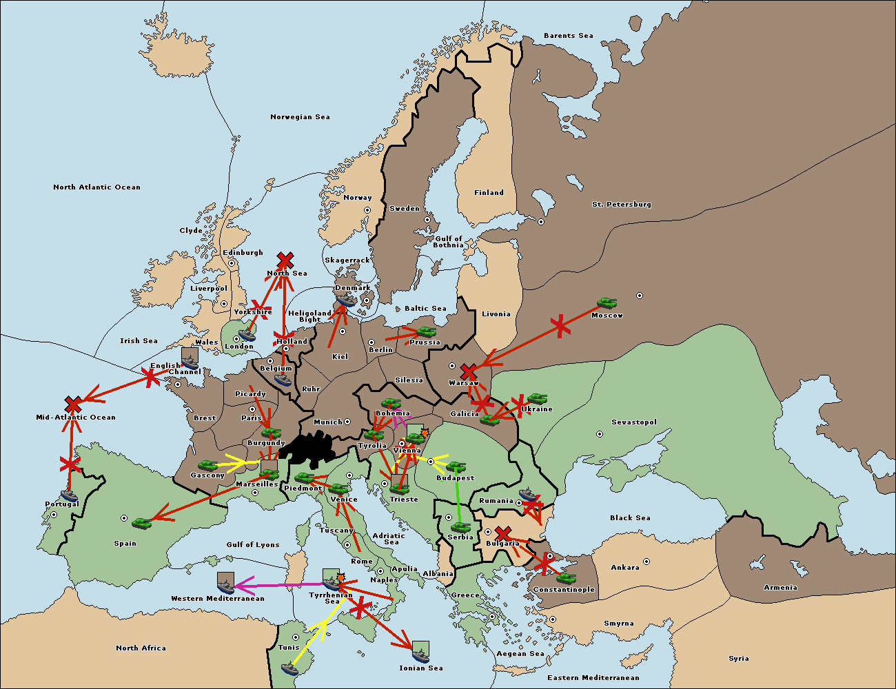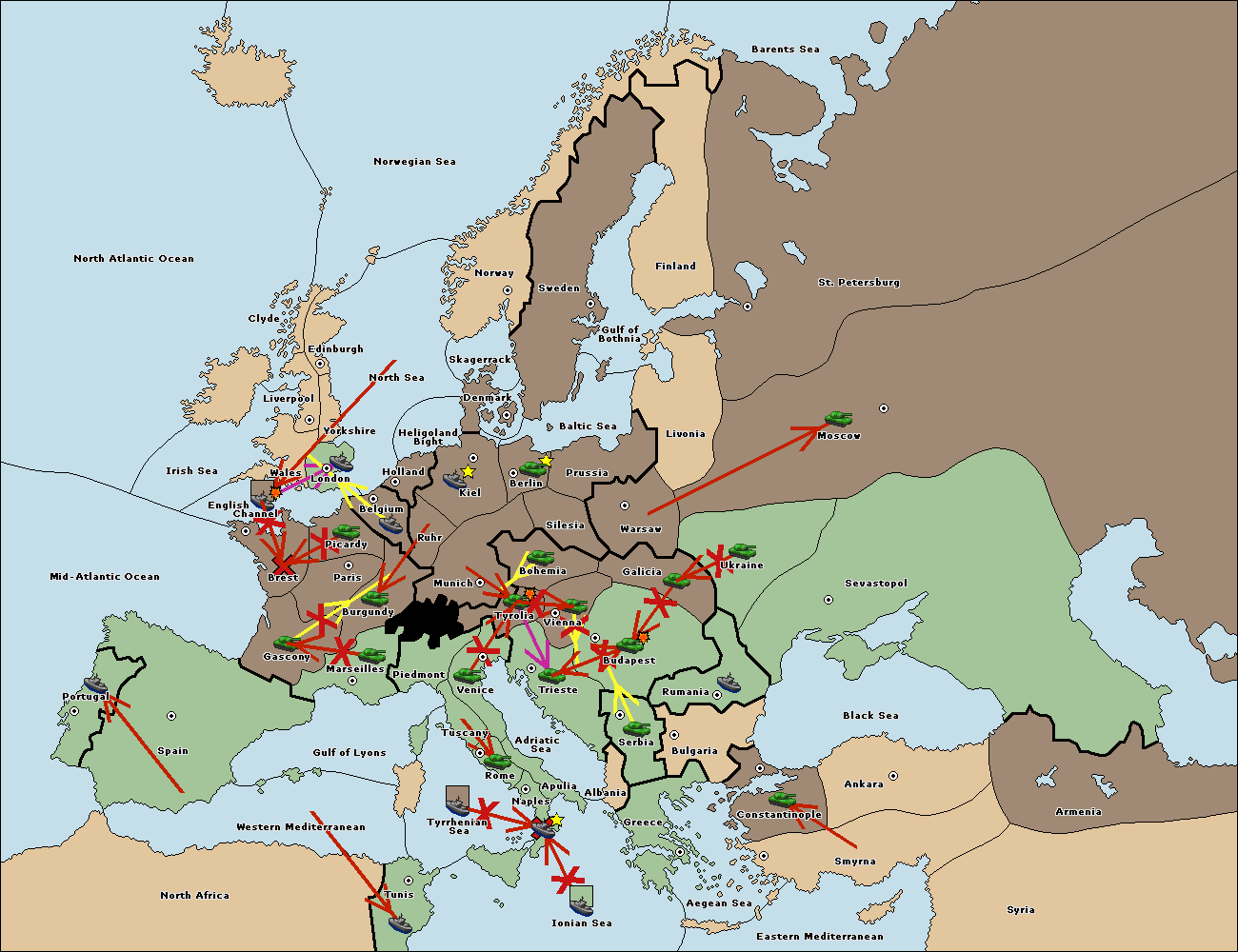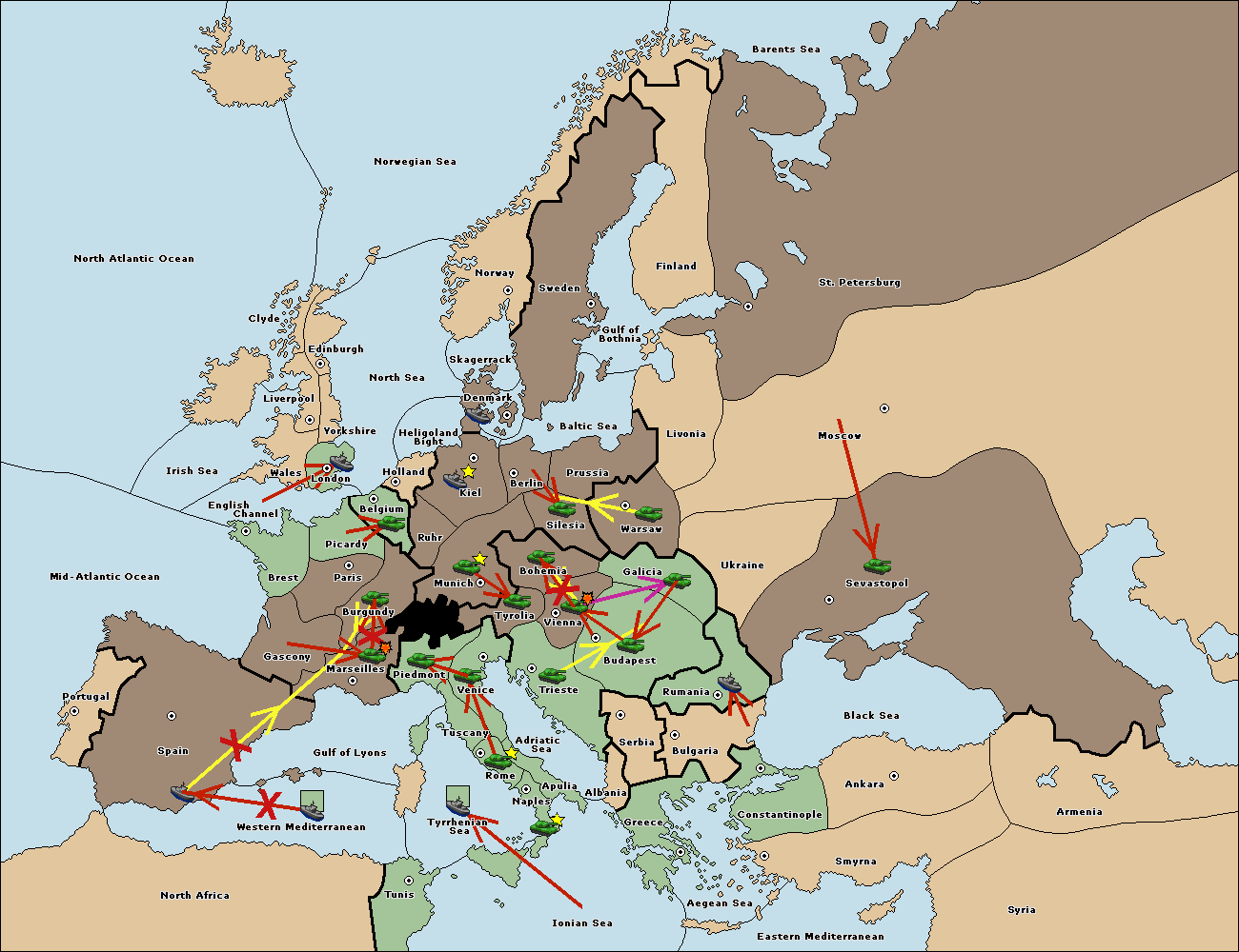 The fleet at Spain (South Coast) support move to Marseilles from Piedmont.
