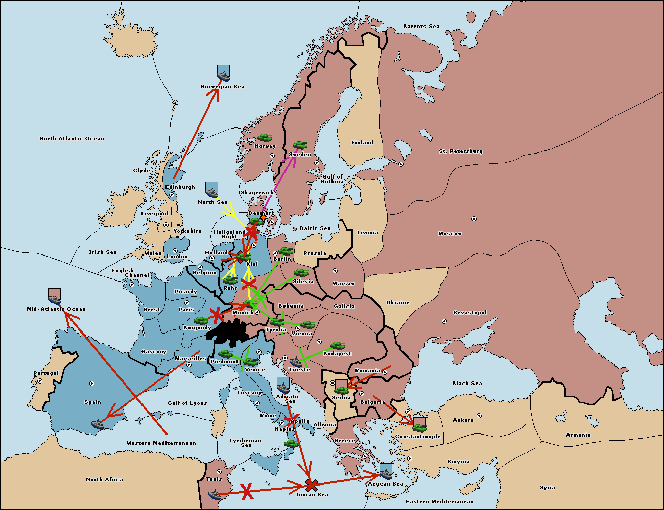 The fleet at Mid-Atlantic Ocean move to Western Mediterranean.