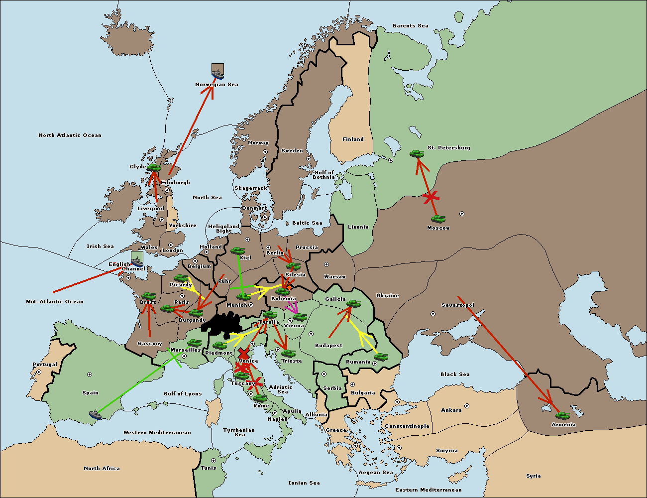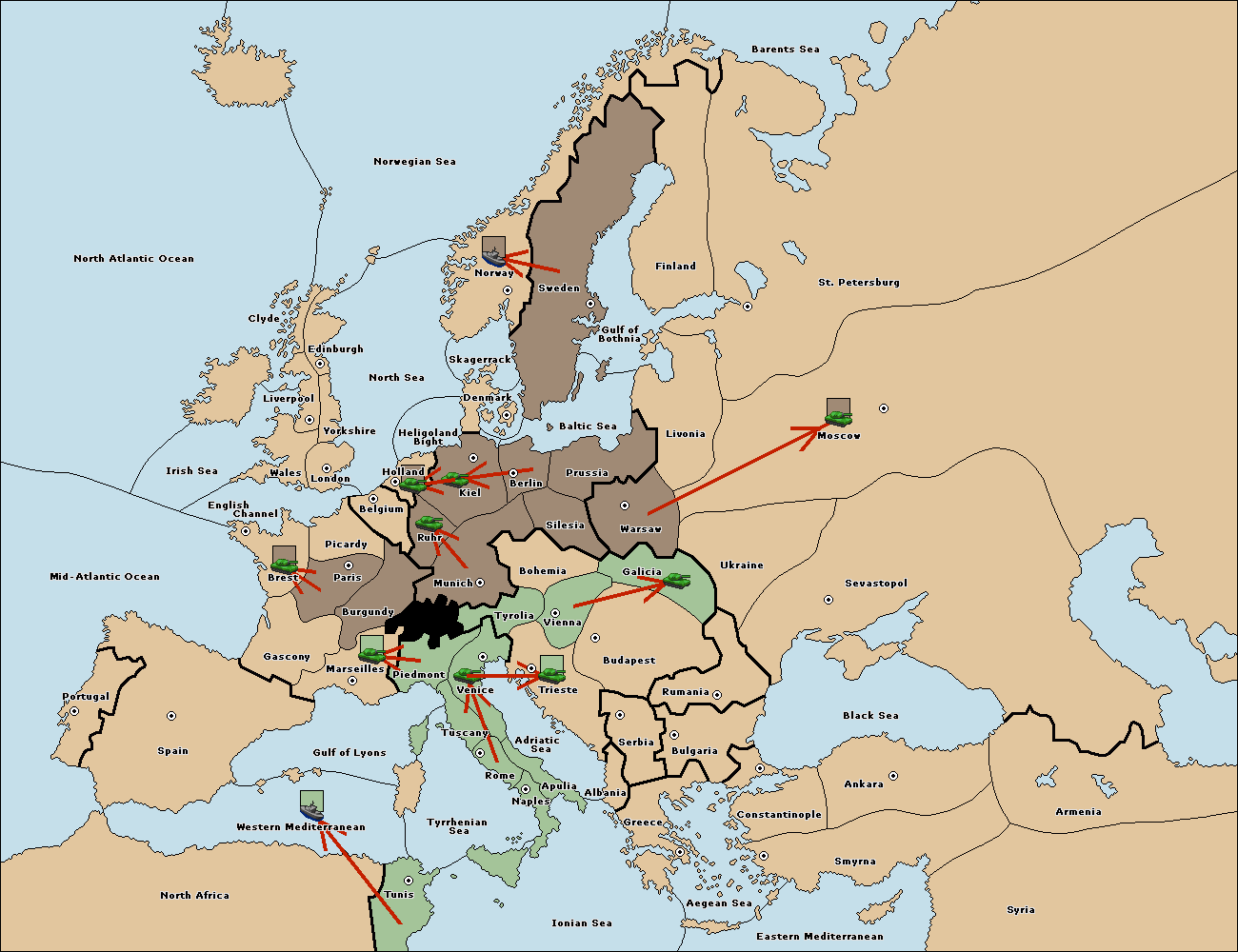 The fleet at Spain (South Coast) support hold to Marseilles.
