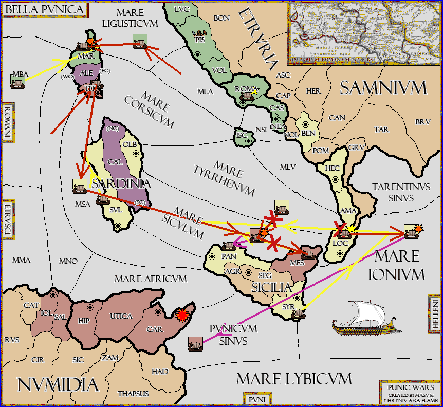 The fleet at Messana support move to Mare Siculum from Mare Sardoum.