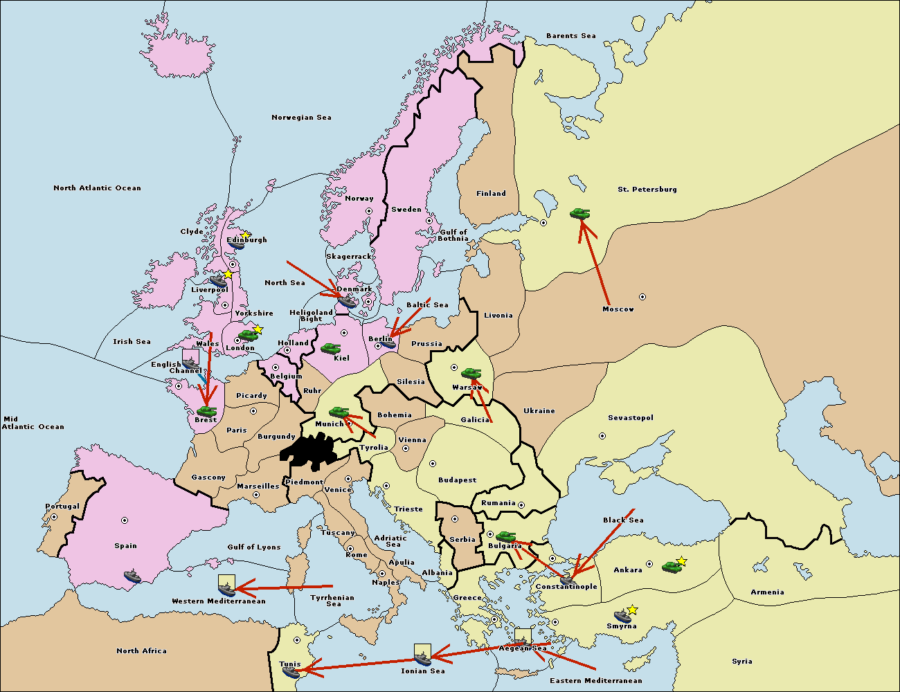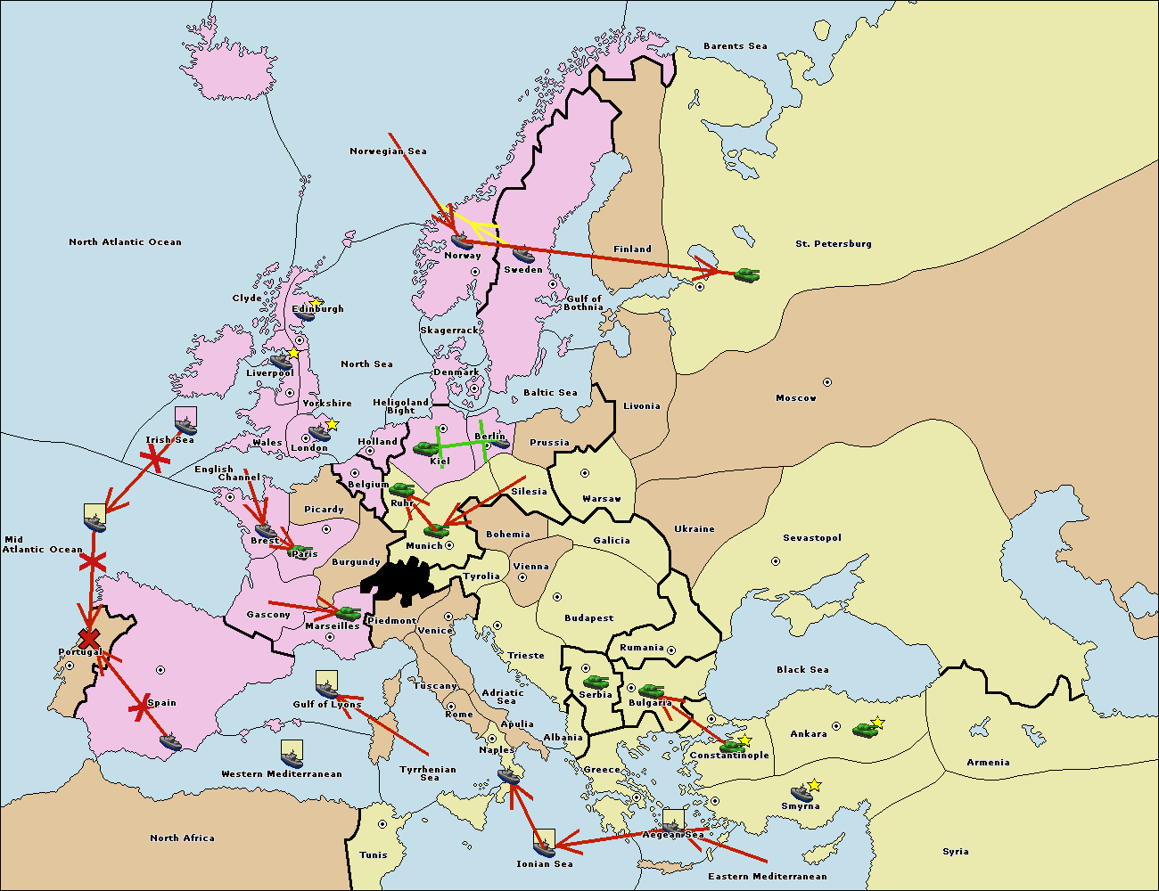 The fleet at Spain (South Coast) support hold to Marseilles.