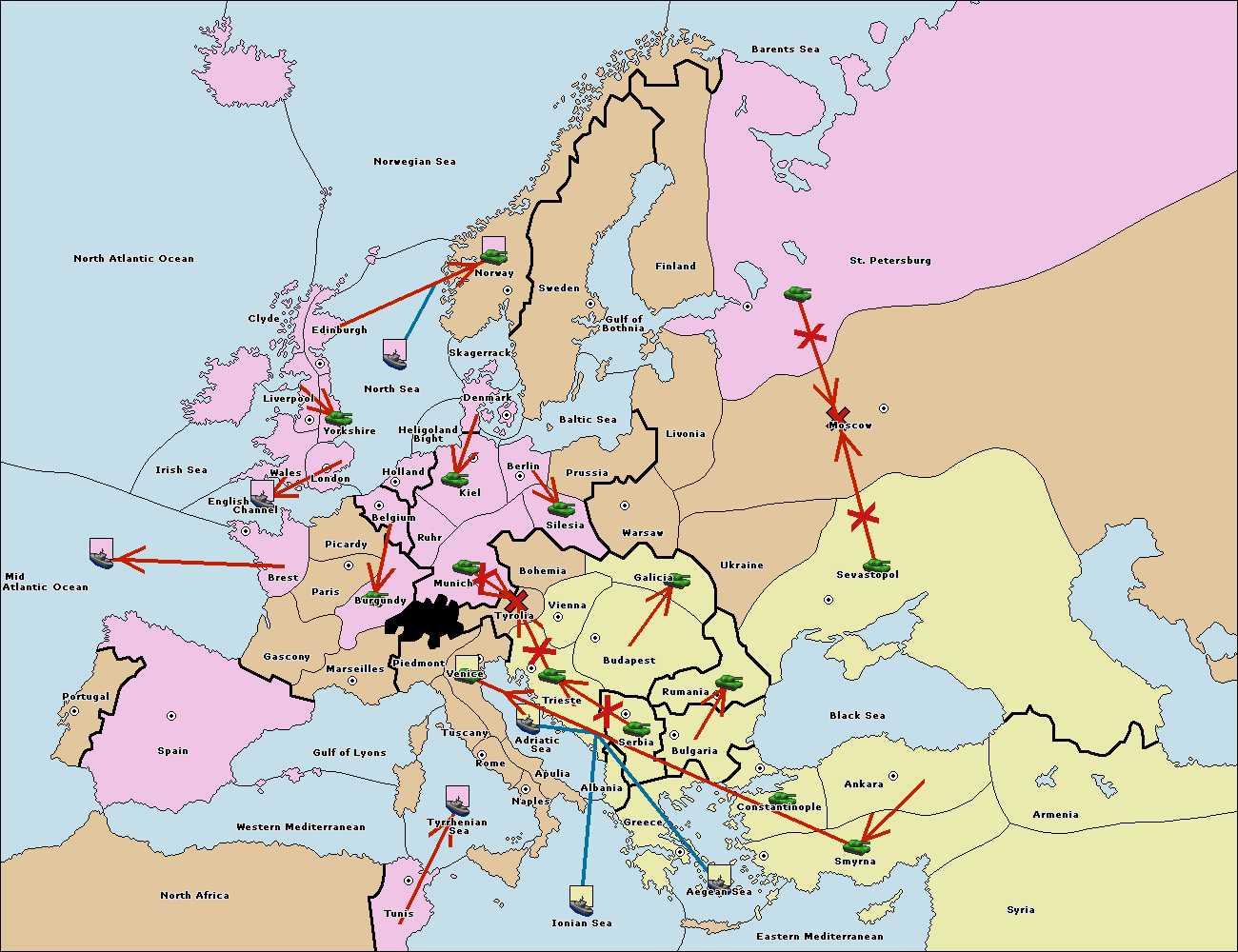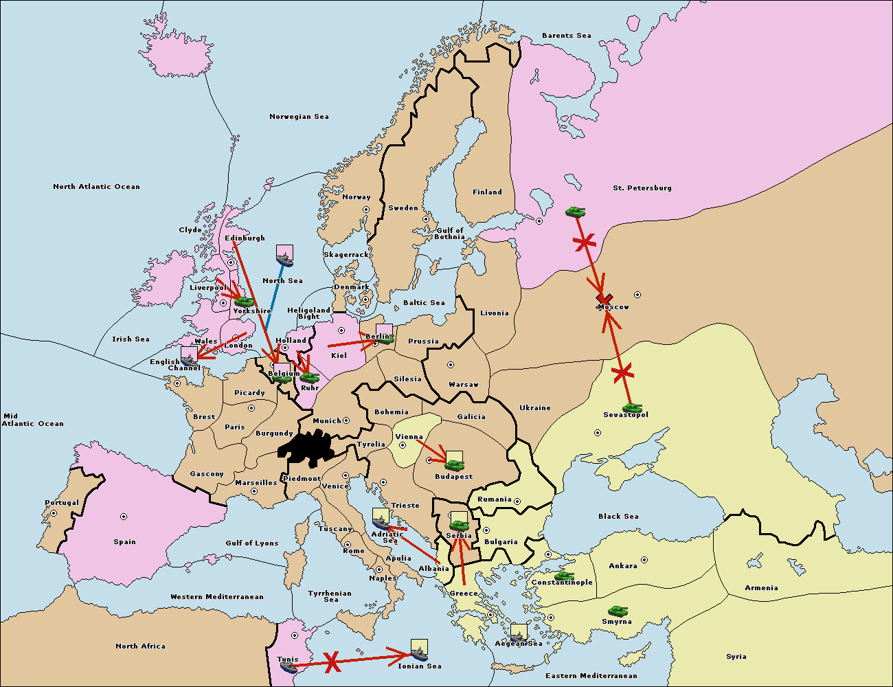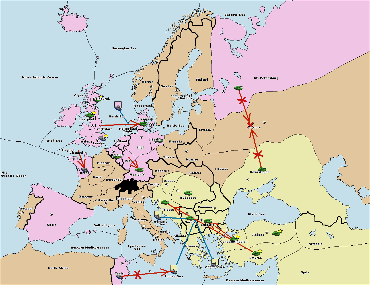 The fleet at Bulgaria (South Coast) move to Greece.