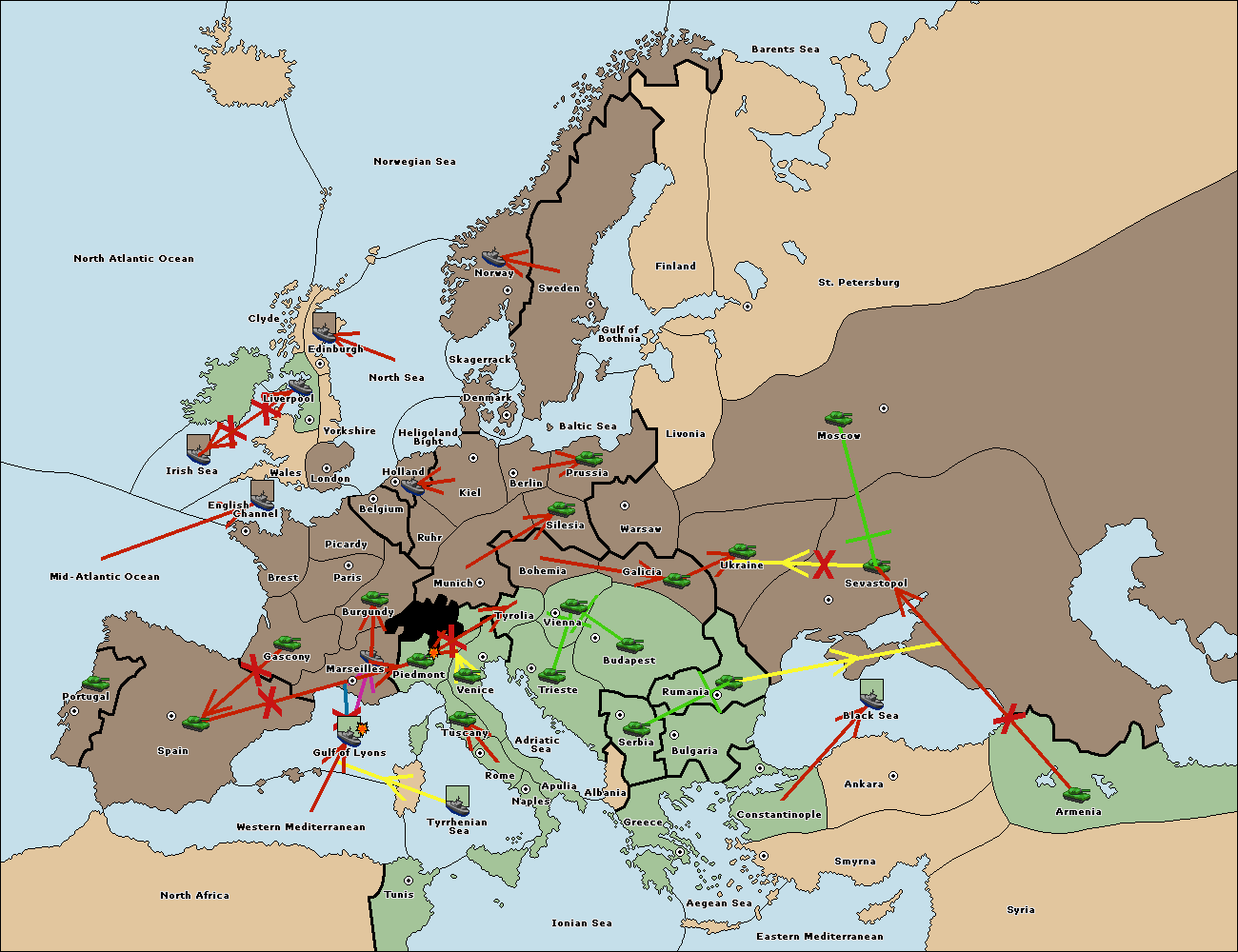 The fleet at Gulf of Lyons support move to Marseilles from Piedmont.