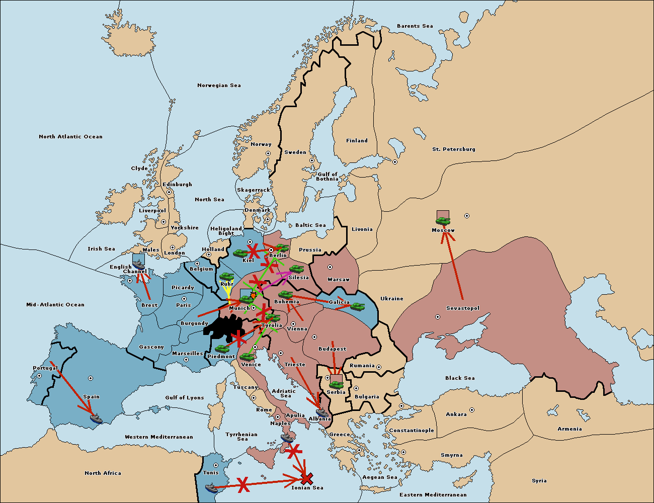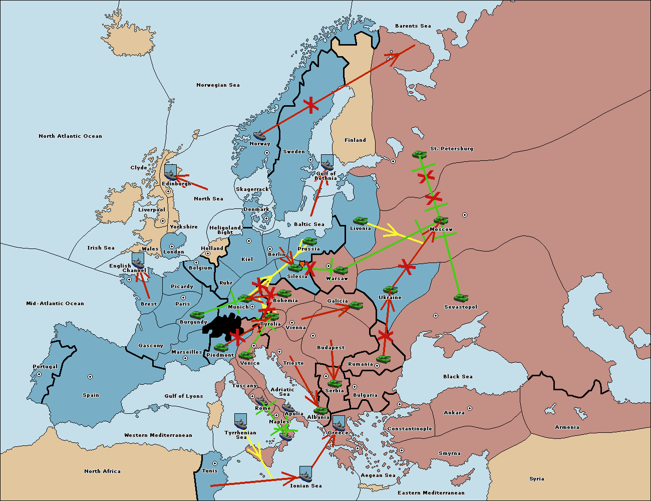 The fleet at Tyrrhenian Sea support move to Naples from Ionian Sea.