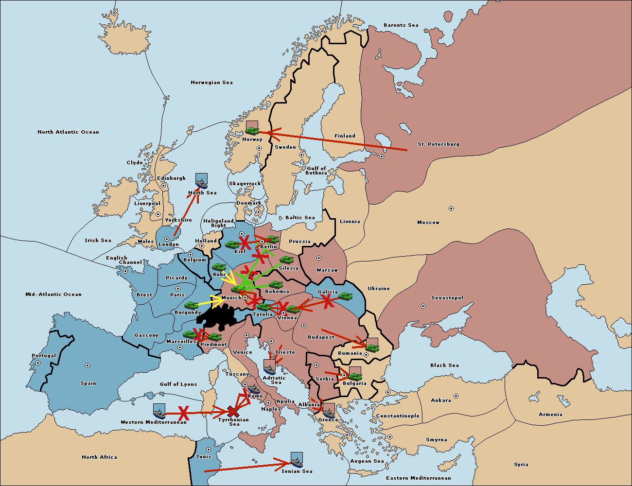 The army at Piedmont support move to Tyrolia from Bohemia.