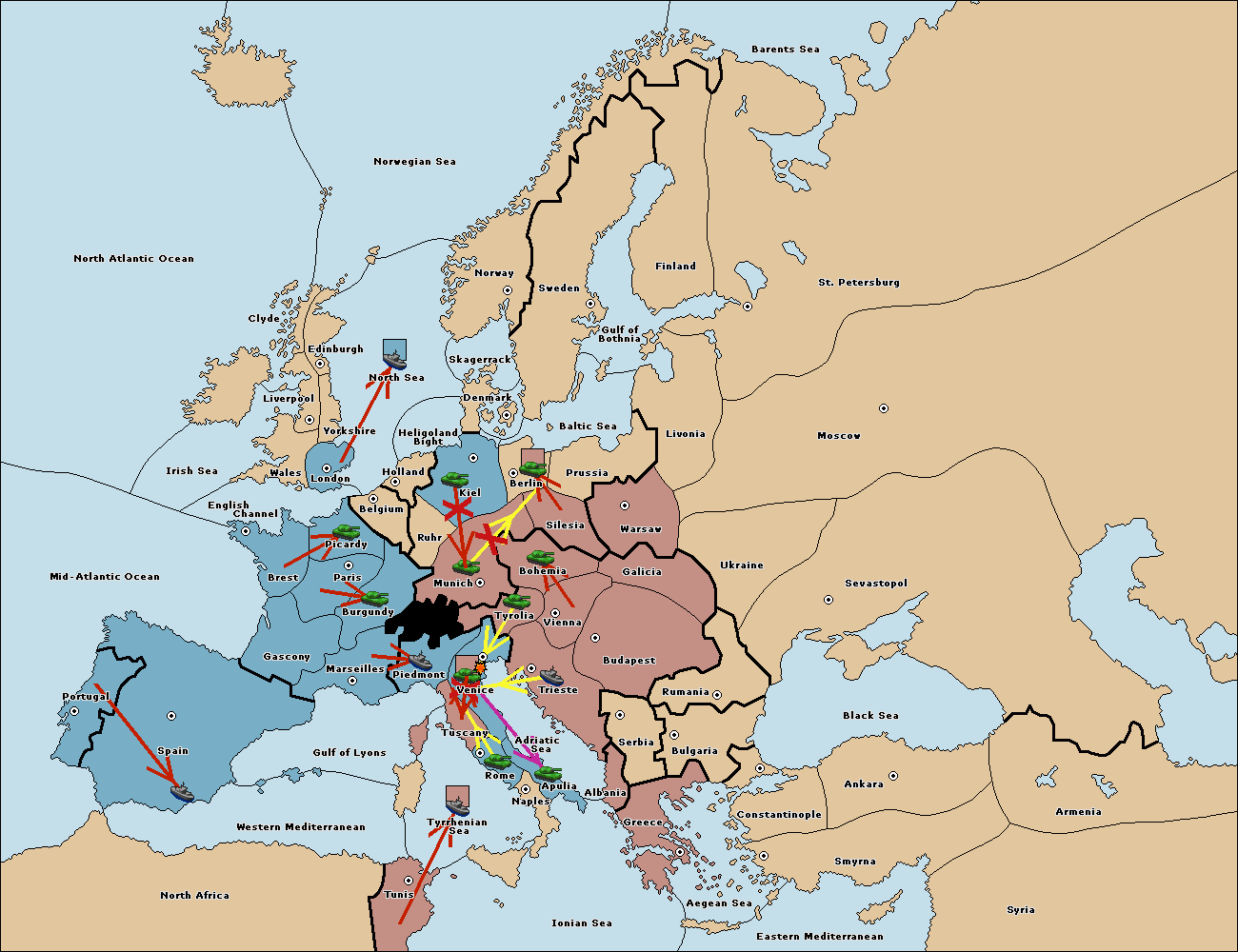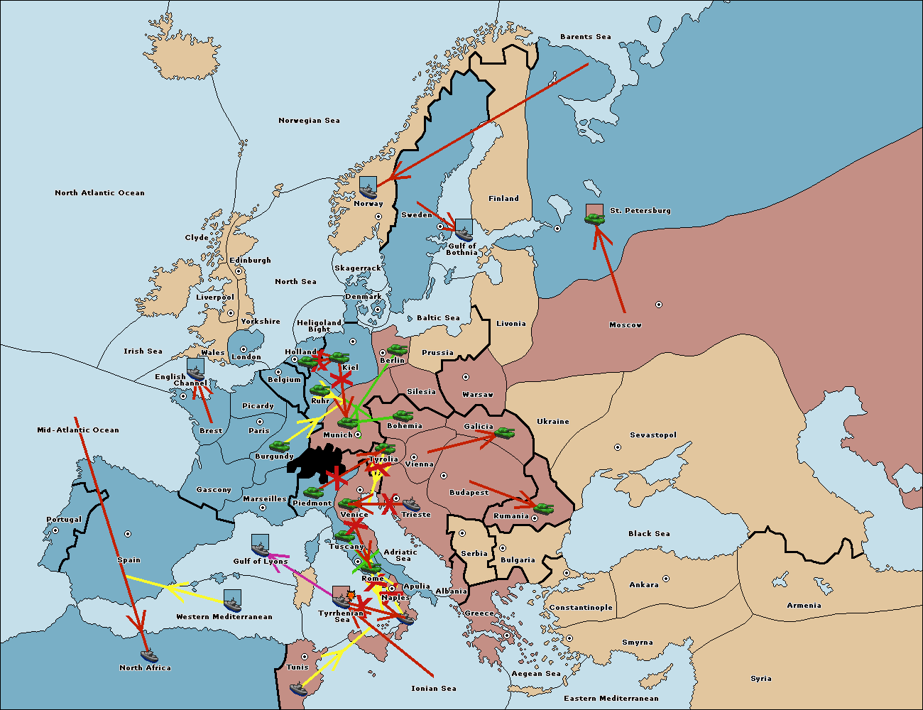 The fleet at Prussia support move to Berlin from Kiel.
