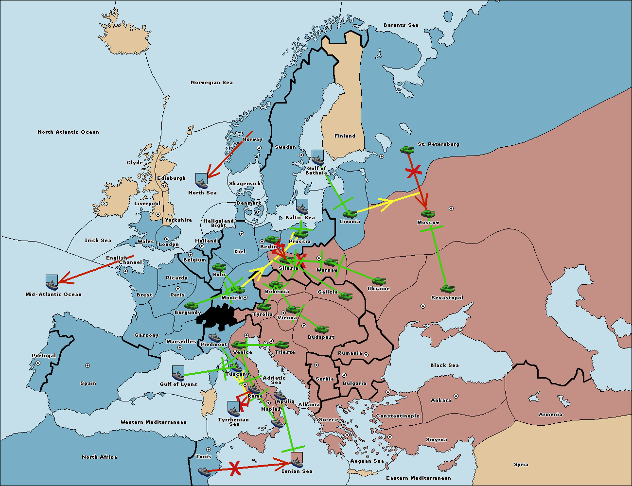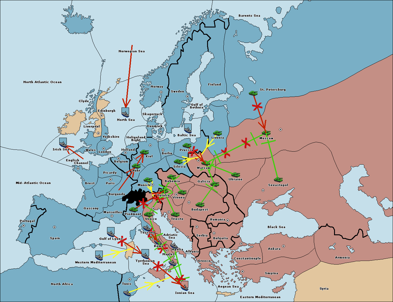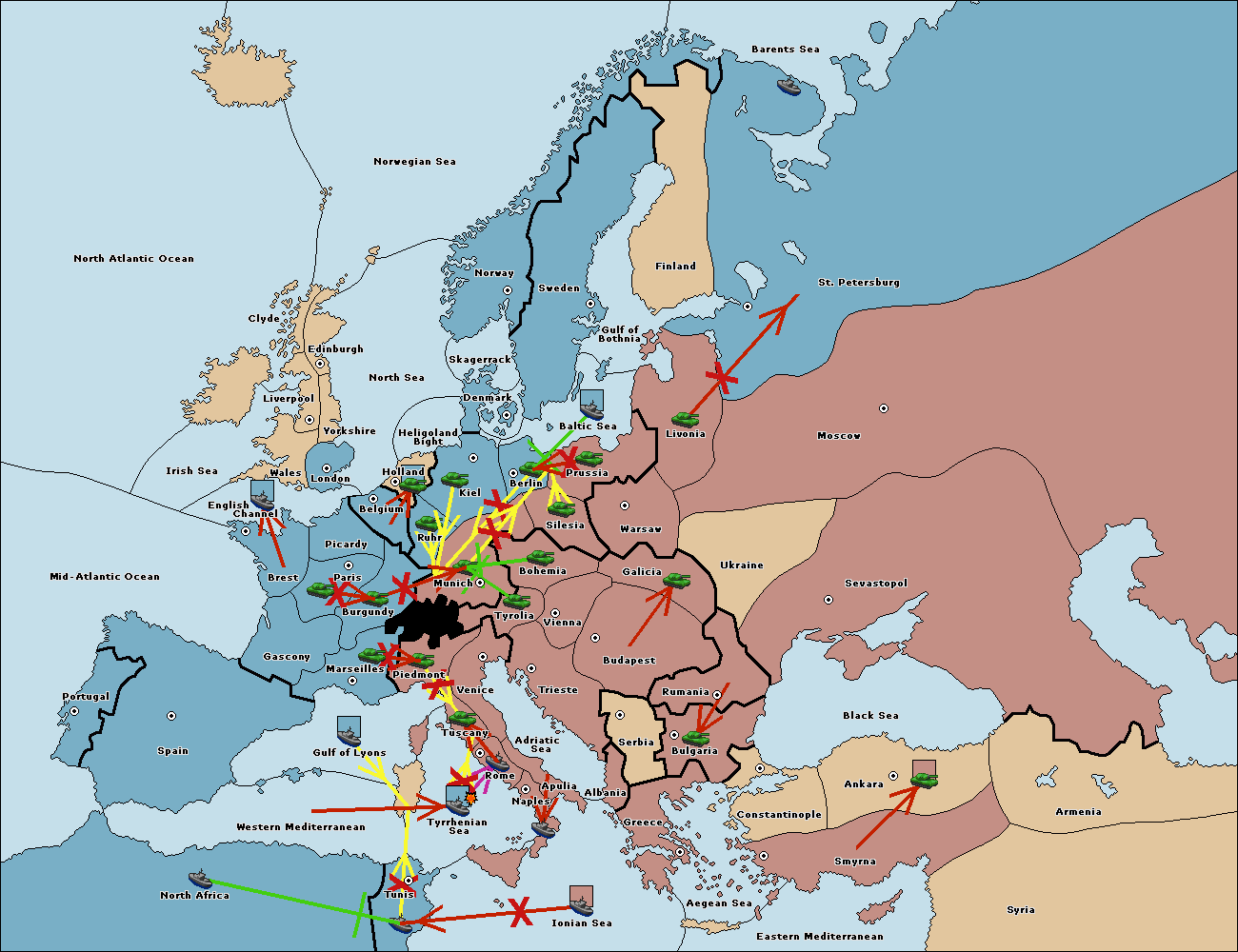 The fleet at Tyrrhenian Sea support hold to Tunis.