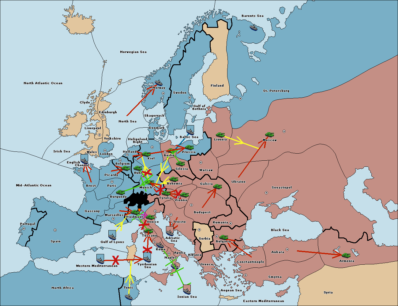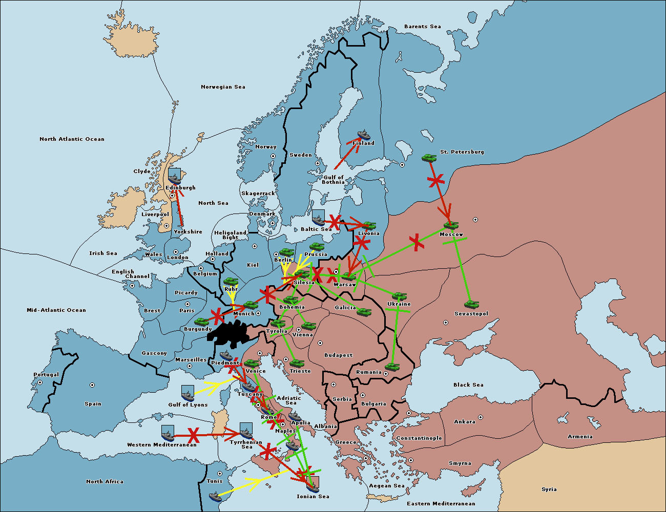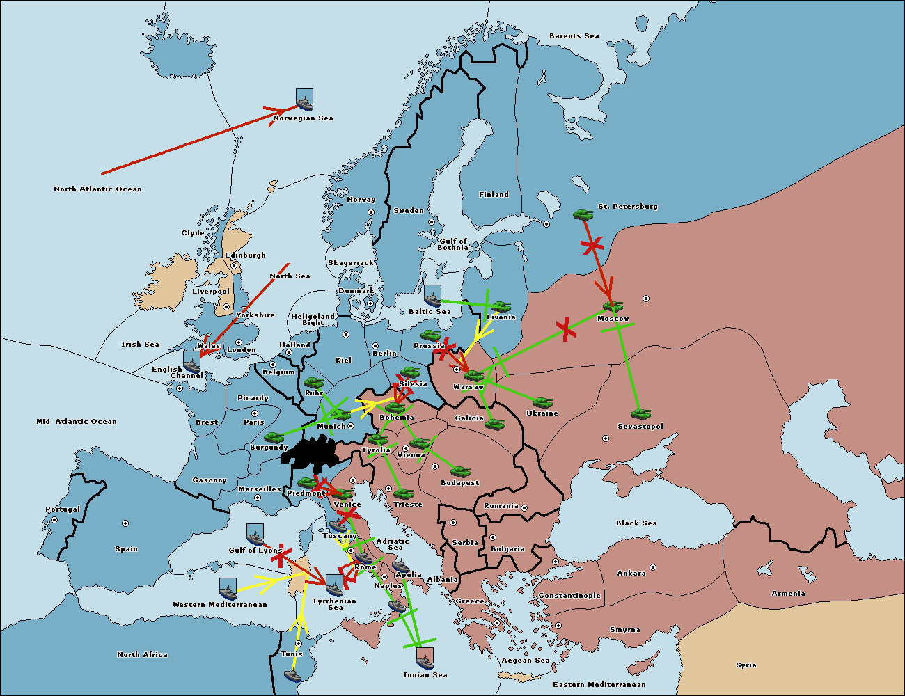 The fleet at Tyrrhenian Sea support hold to Tunis.