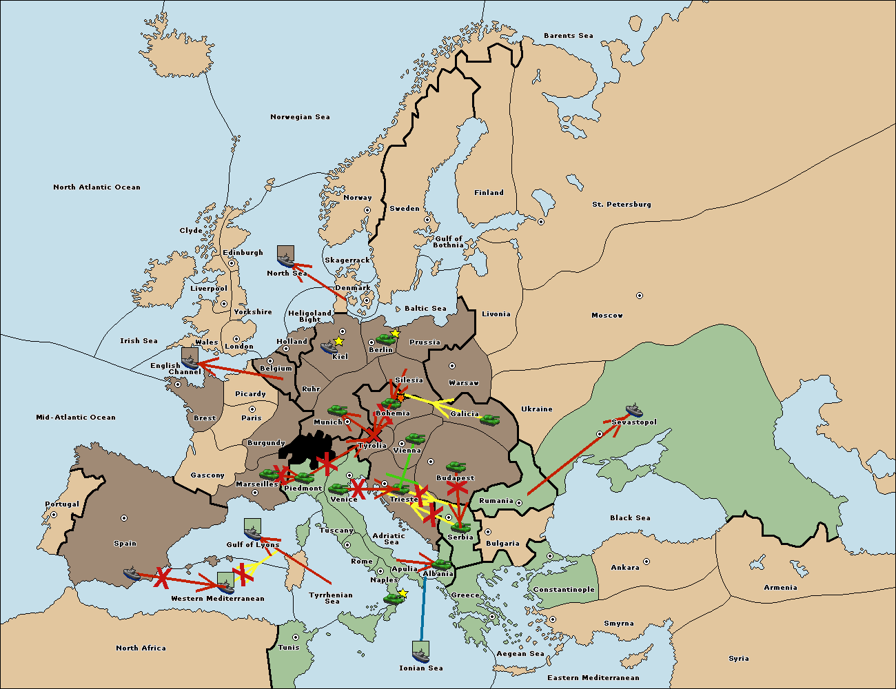 The fleet at Spain (South Coast) support move to Marseilles from Burgundy.