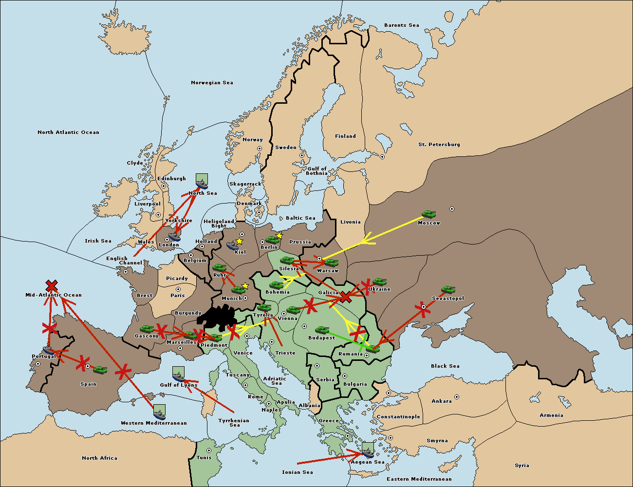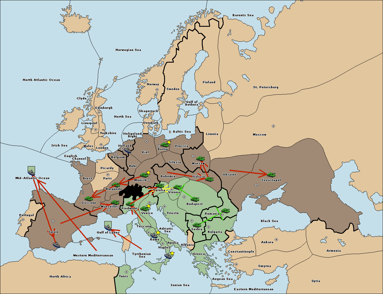 The fleet at Mid-Atlantic Ocean move to Western Mediterranean.