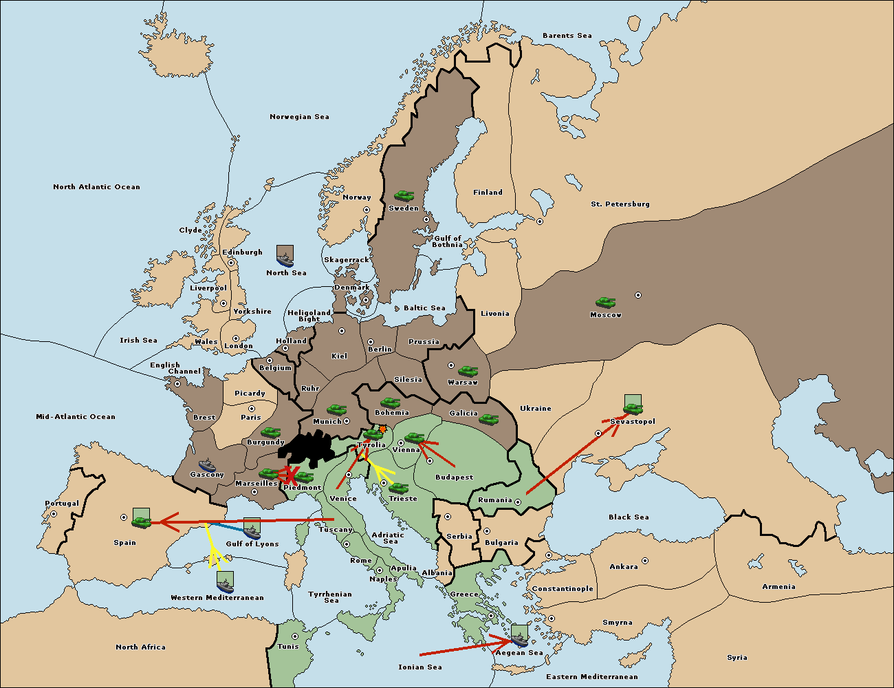 The fleet at Tyrrhenian Sea move to Gulf of Lyons.