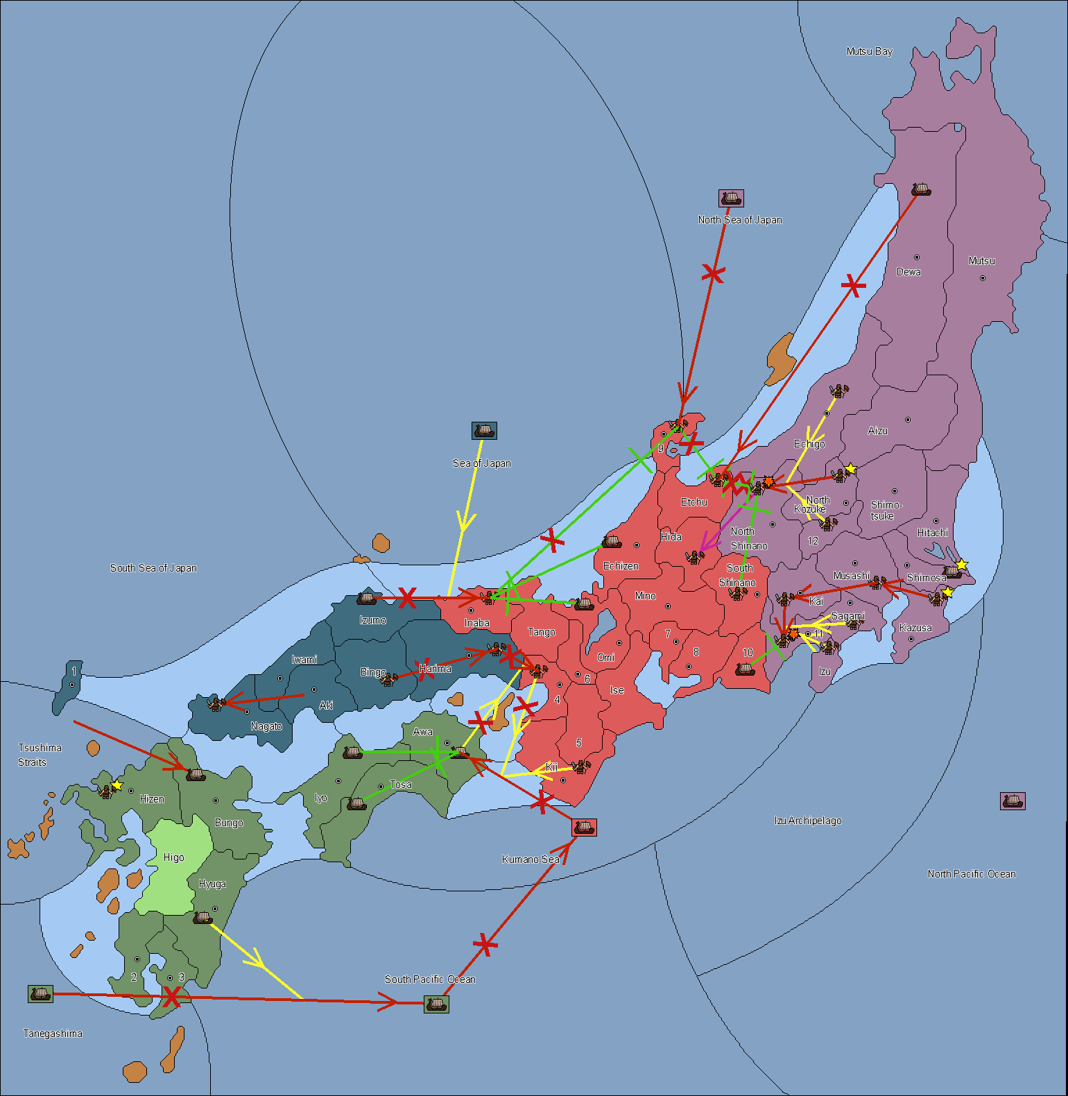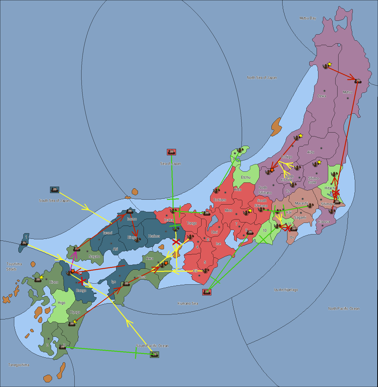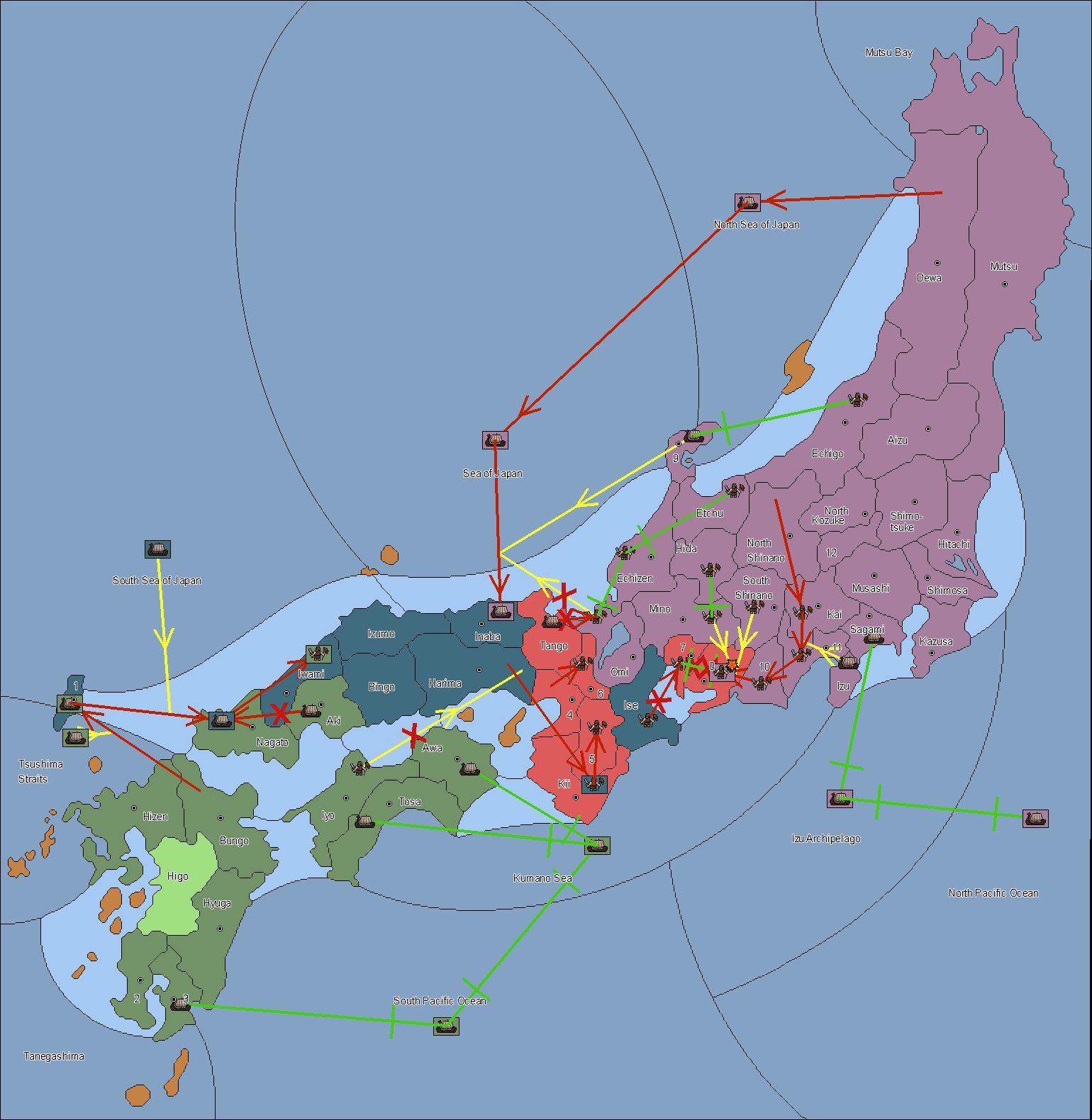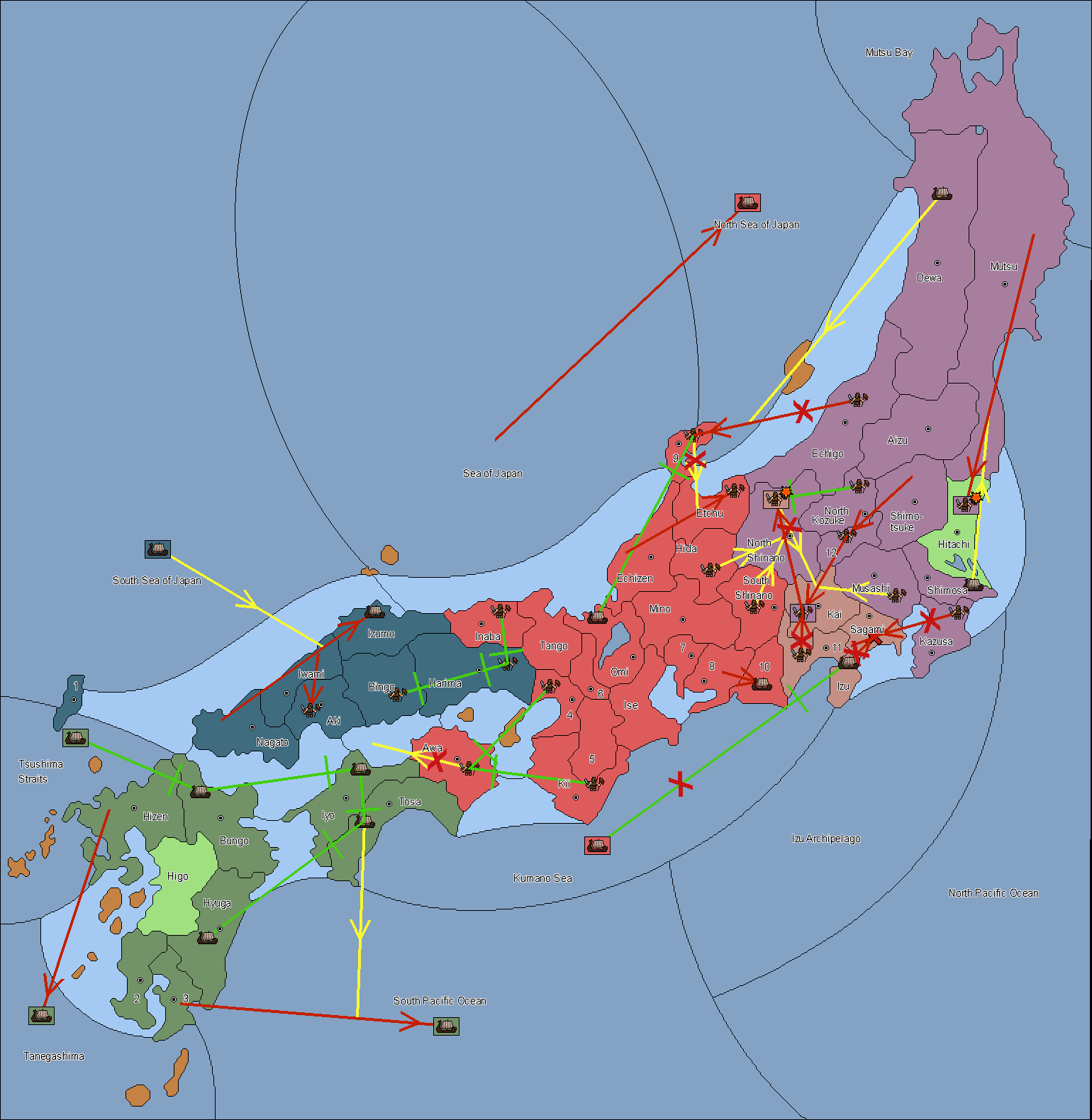 The army at Settsu (4) support move to Awa from Tosa.