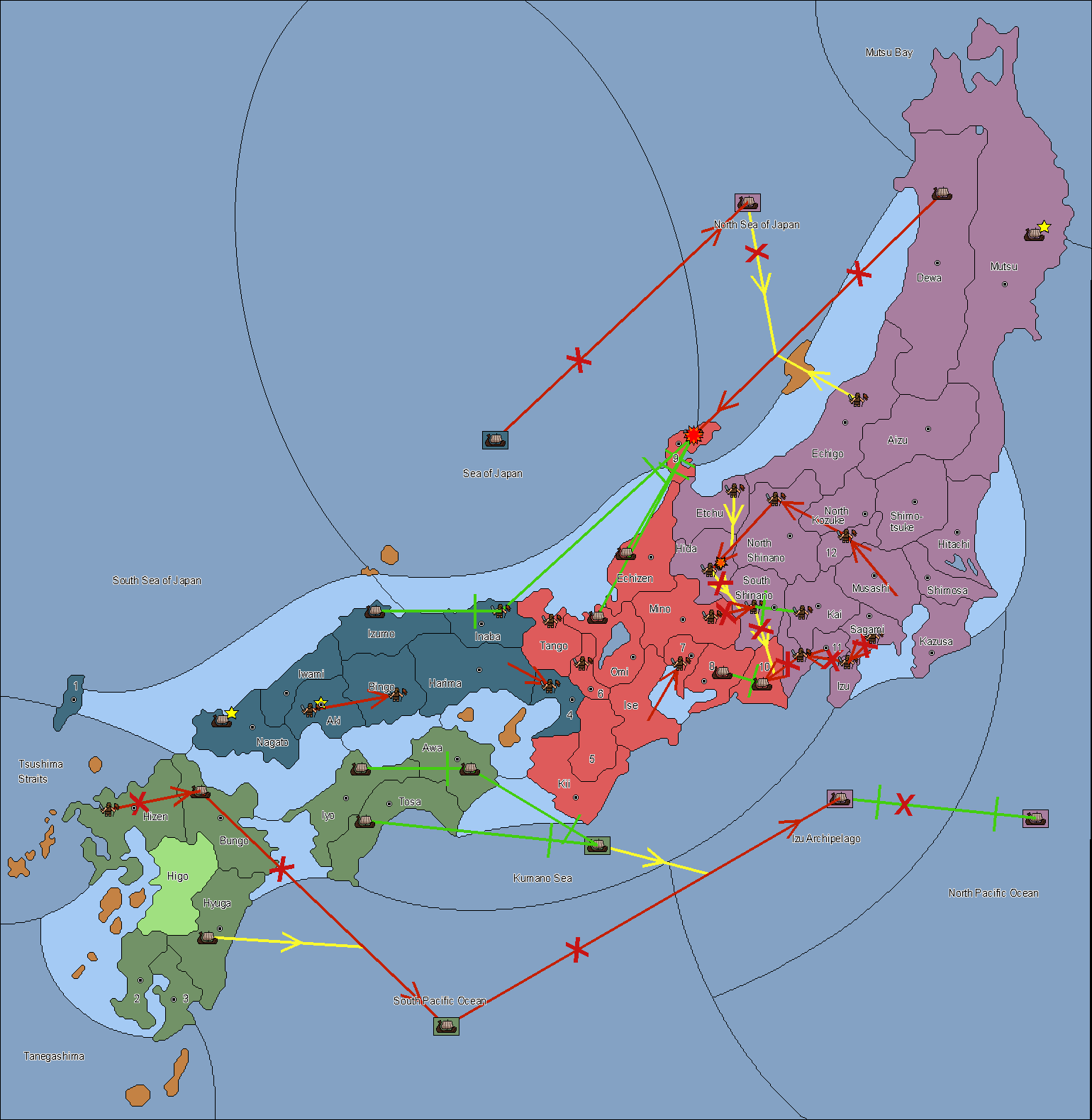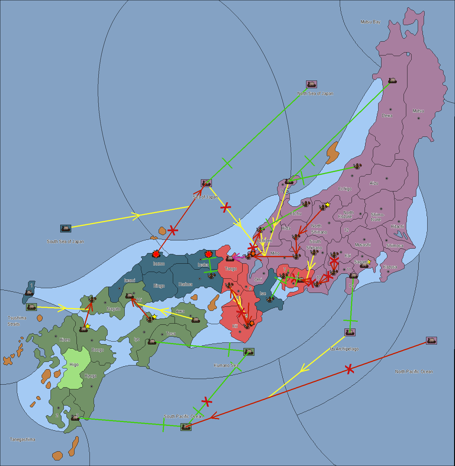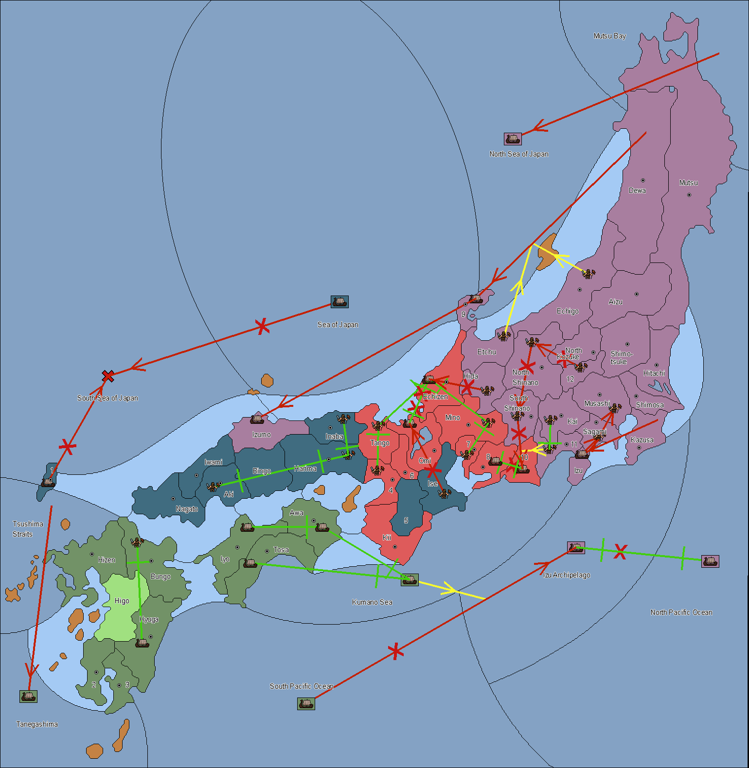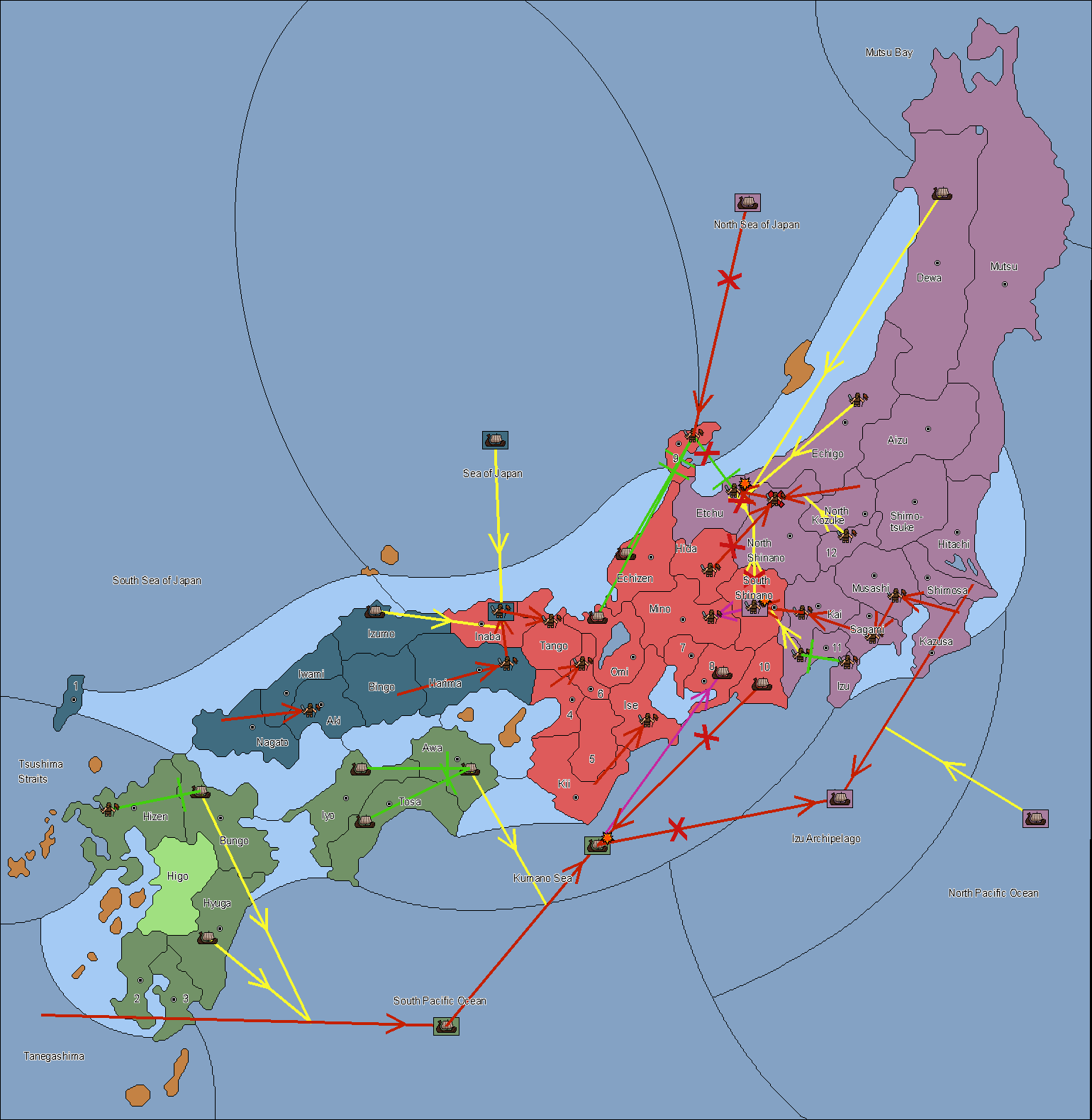 The army at Settsu (4) support move to Awa from Tosa.
