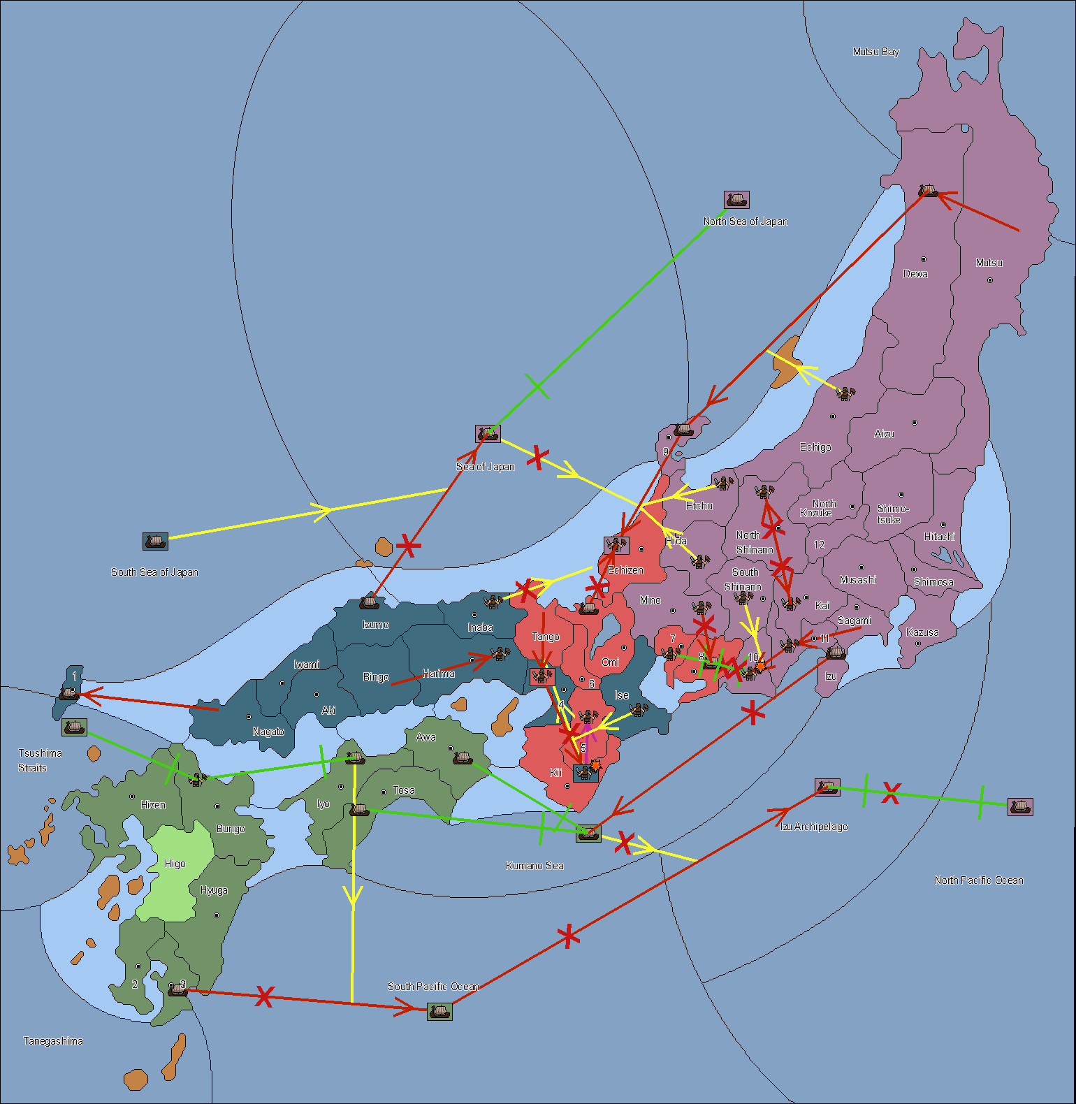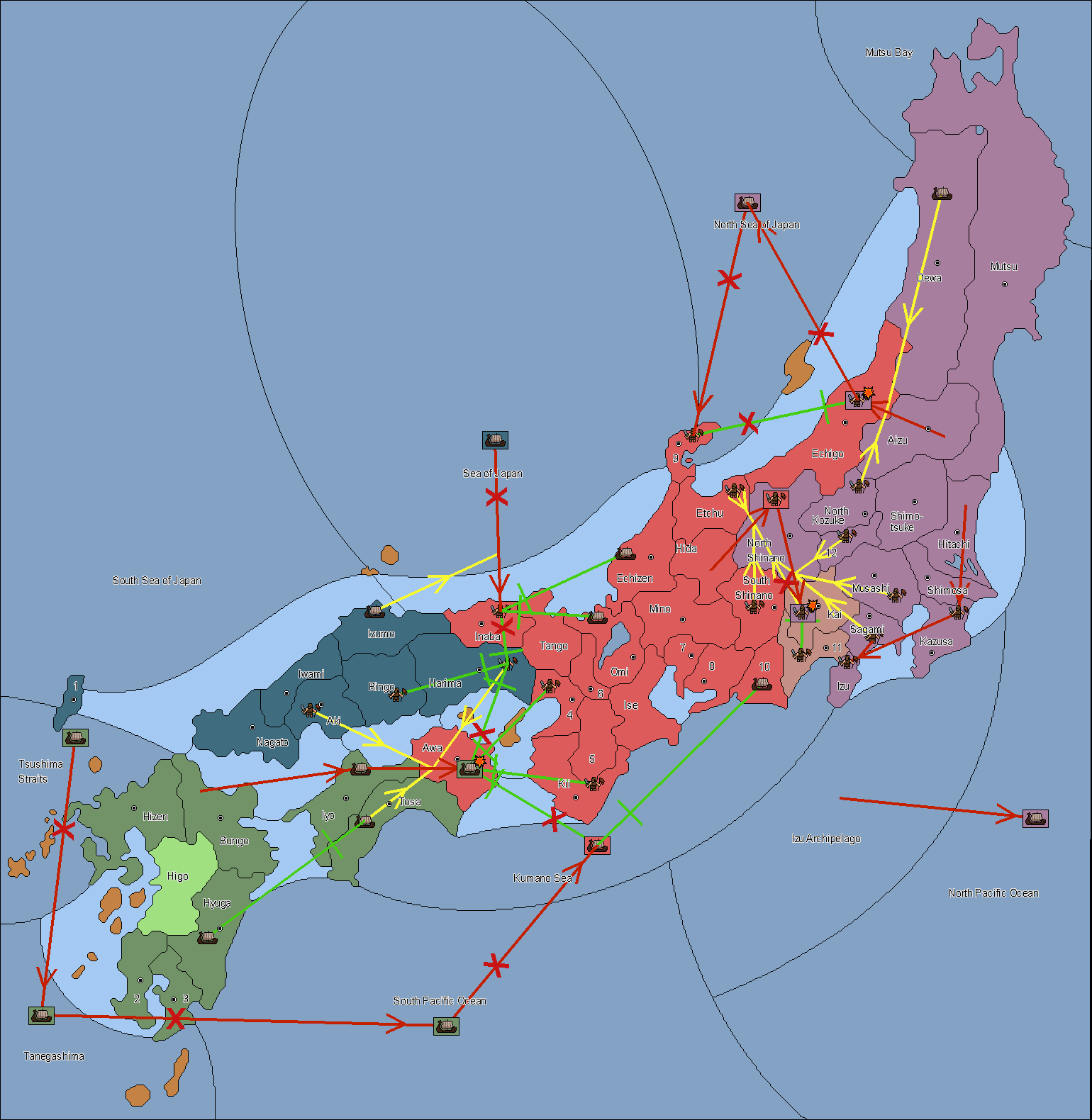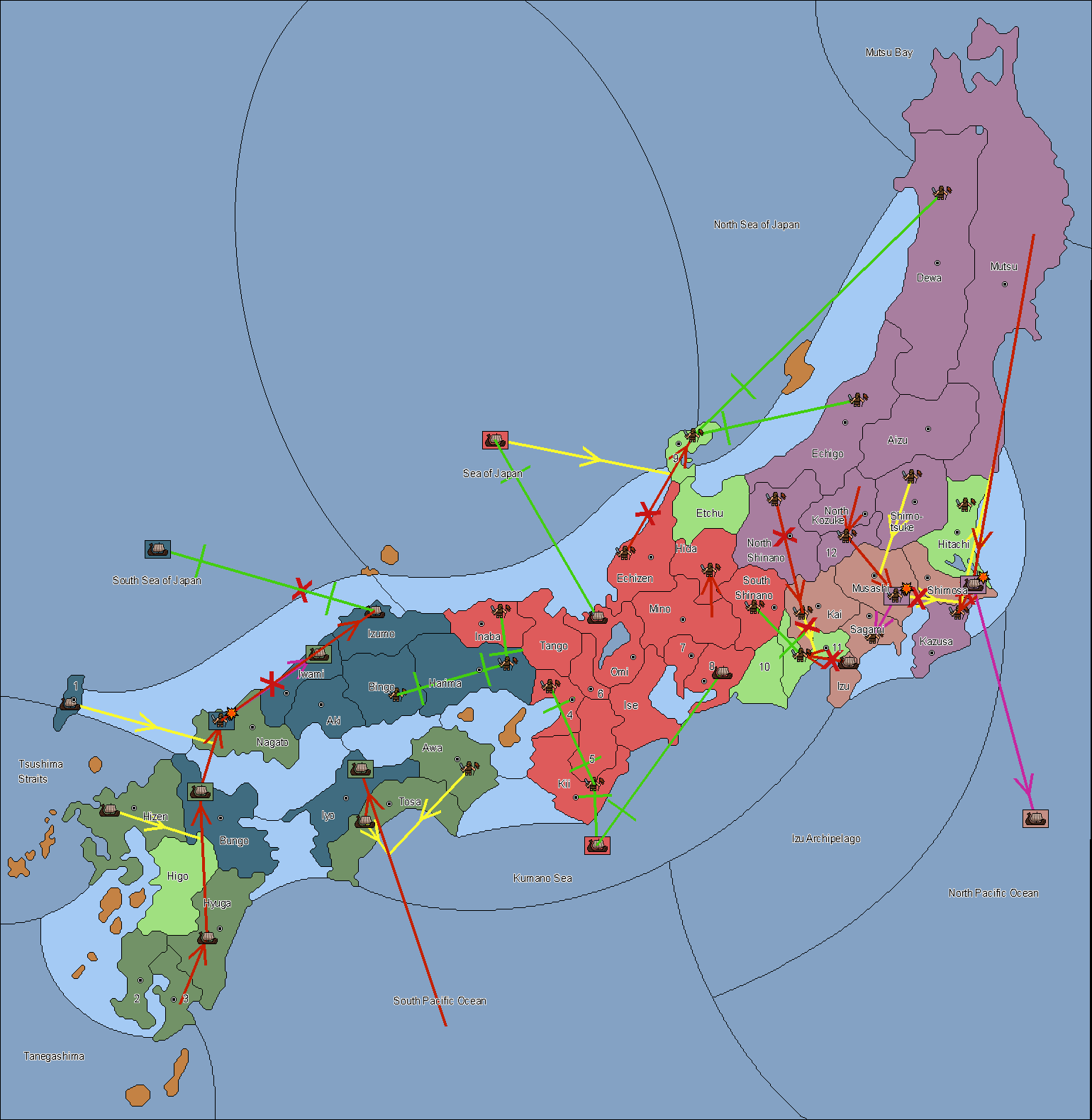 The fleet at Tsushima (1) support move to Bungo from Iyo.