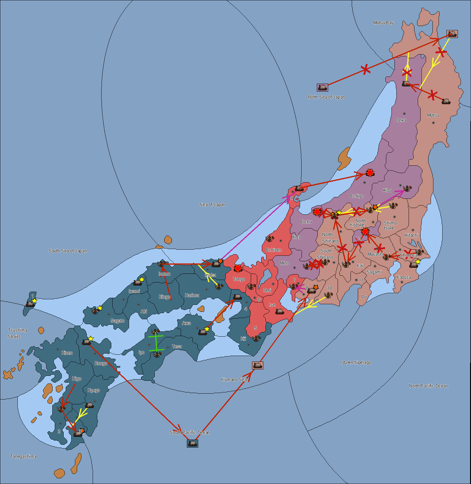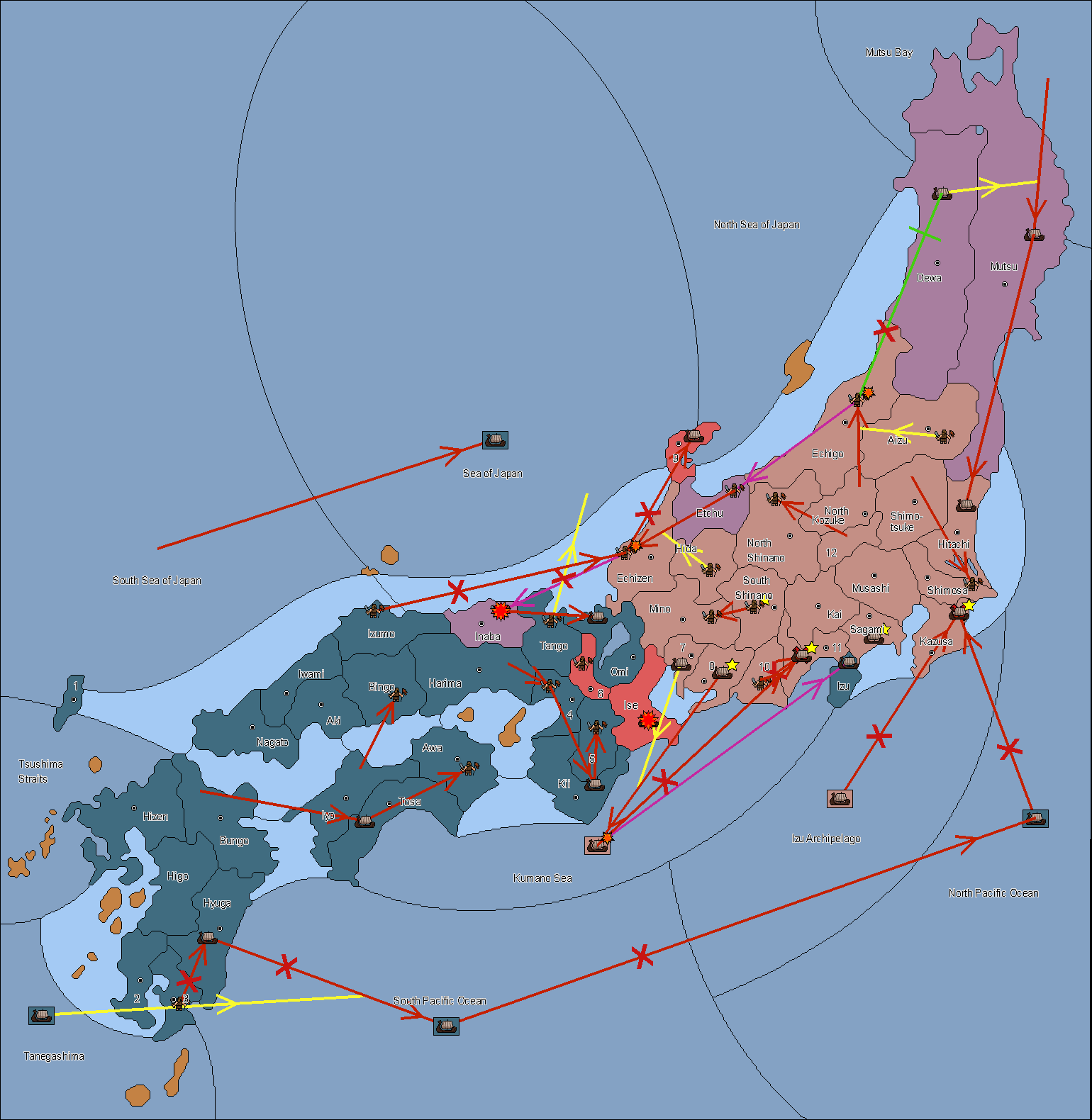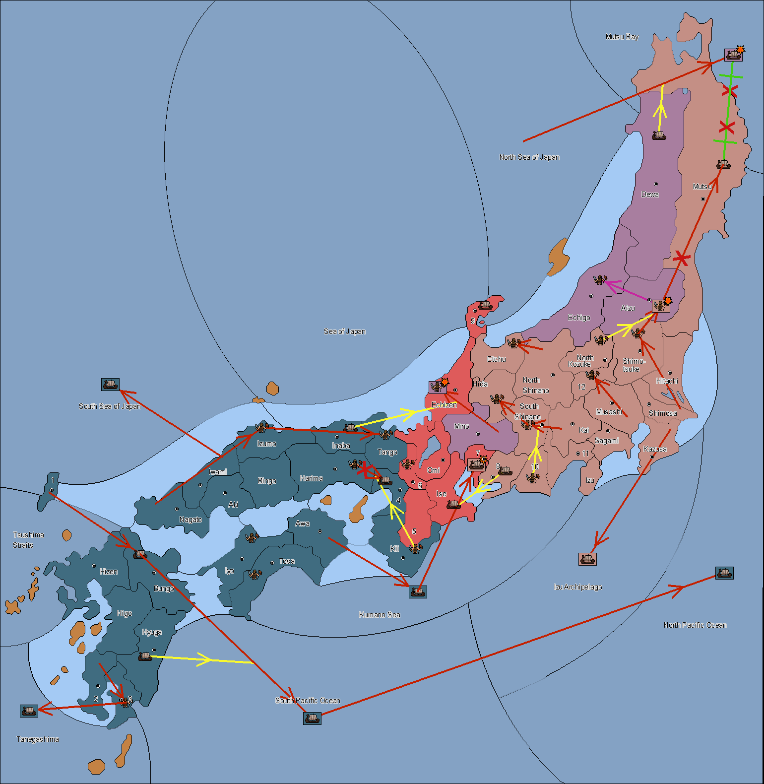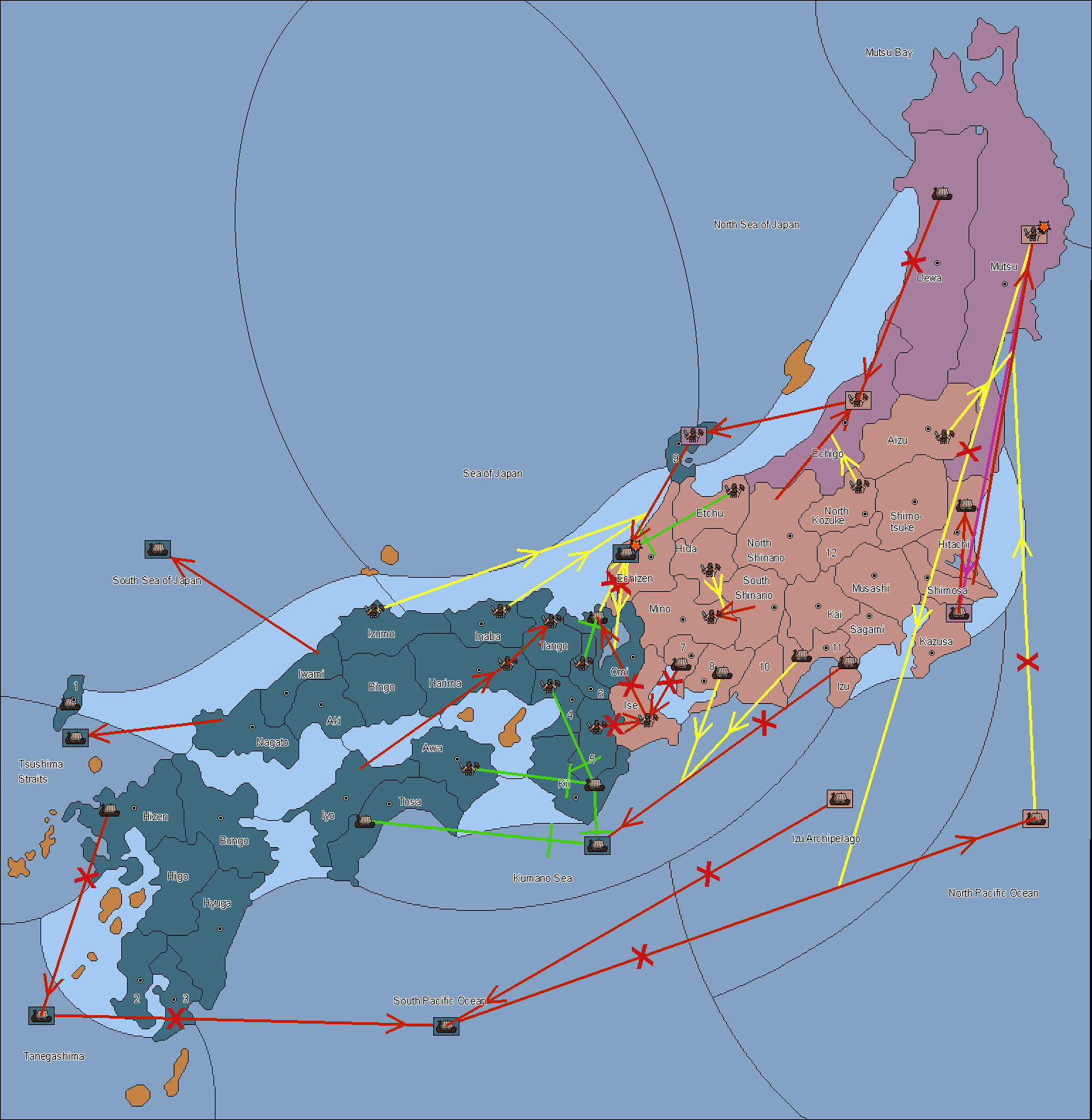The fleet at Noto (9) support move to Etchu from Dewa.