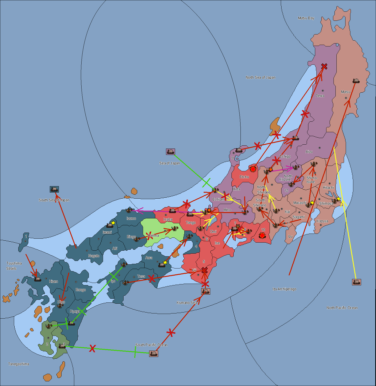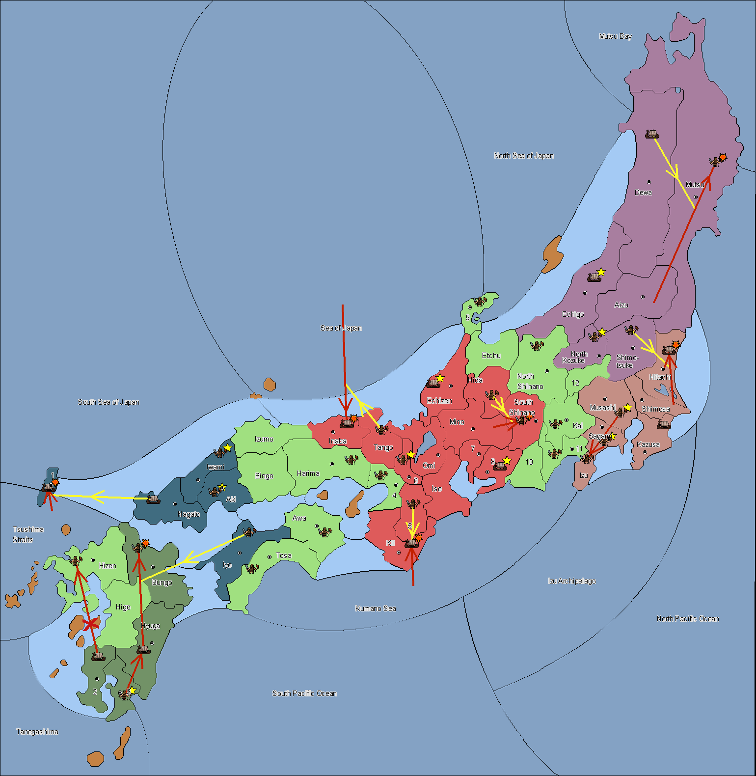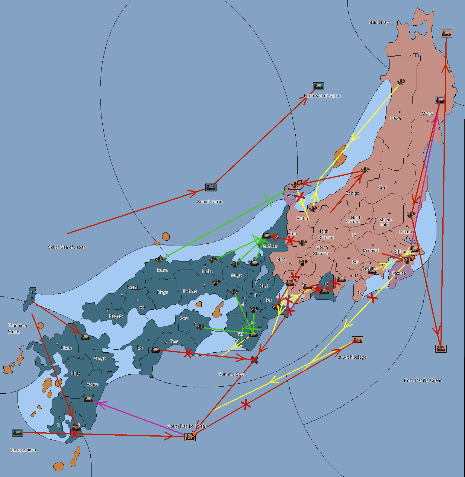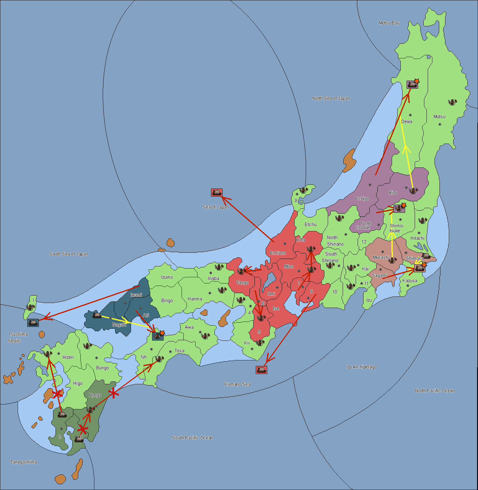 The fleet at Noto (9) support move to Etchu from Dewa.