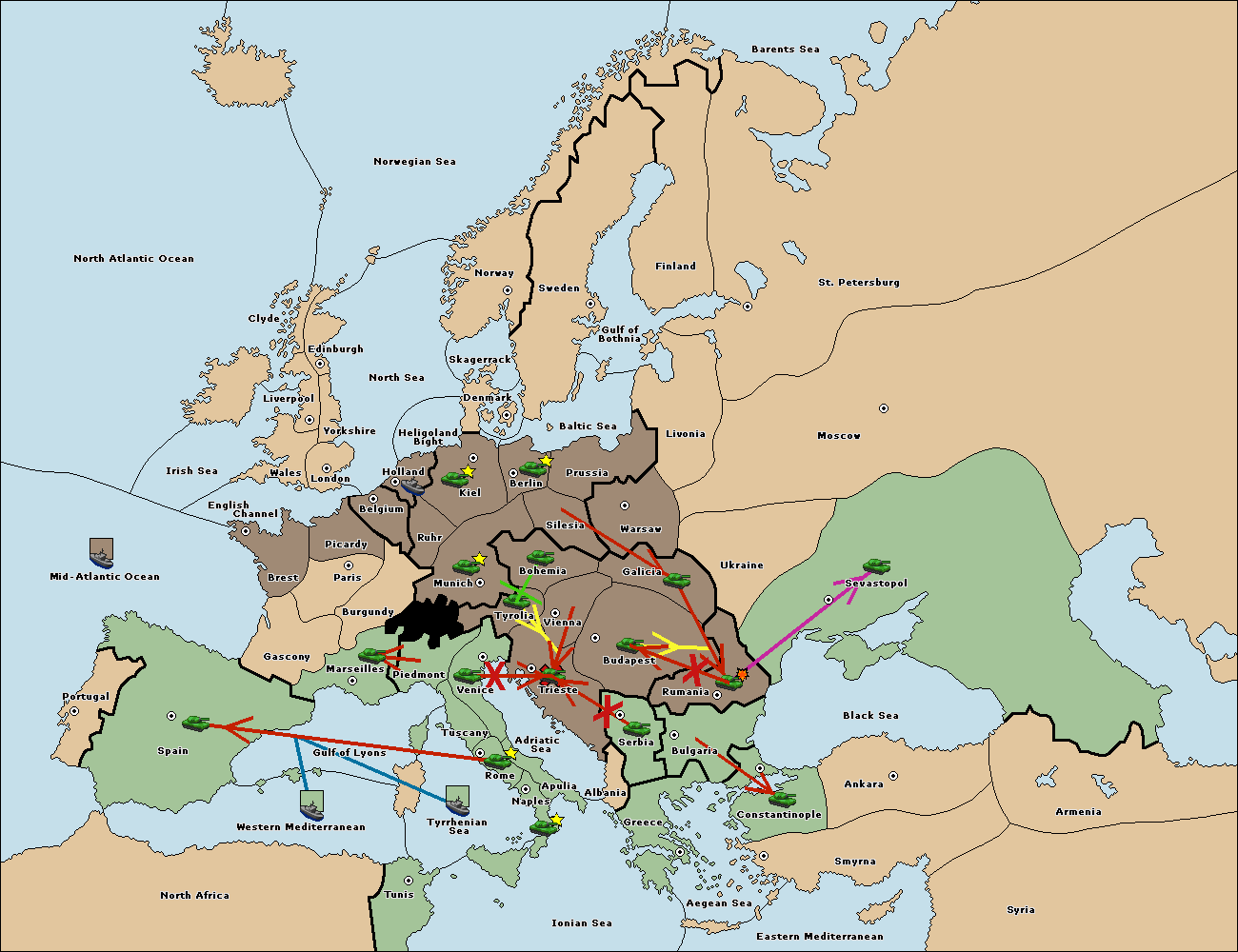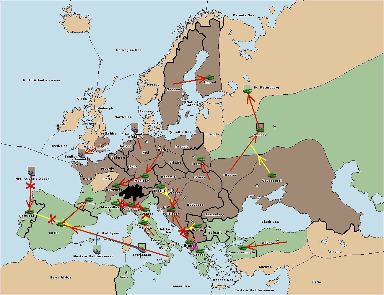 The fleet at Mid-Atlantic Ocean move to Western Mediterranean.