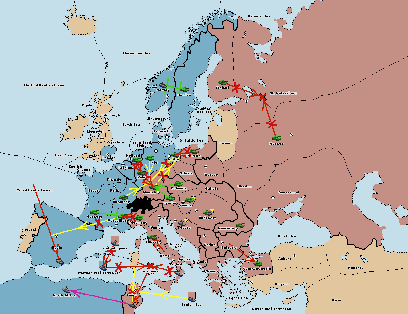 The fleet at Tunis support move to Tyrrhenian Sea from Ionian Sea.