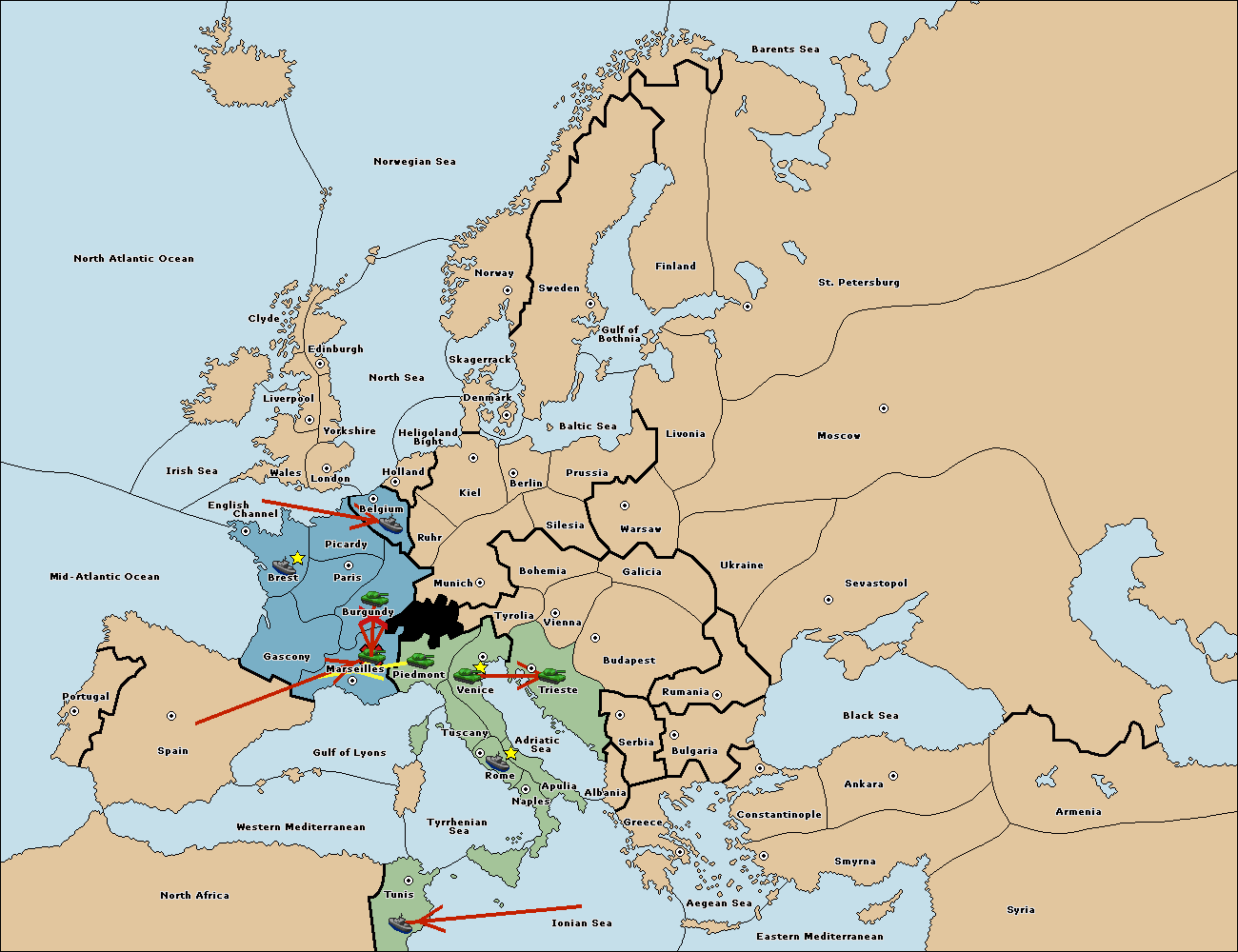 The fleet at Tyrrhenian Sea move to Gulf of Lyons.