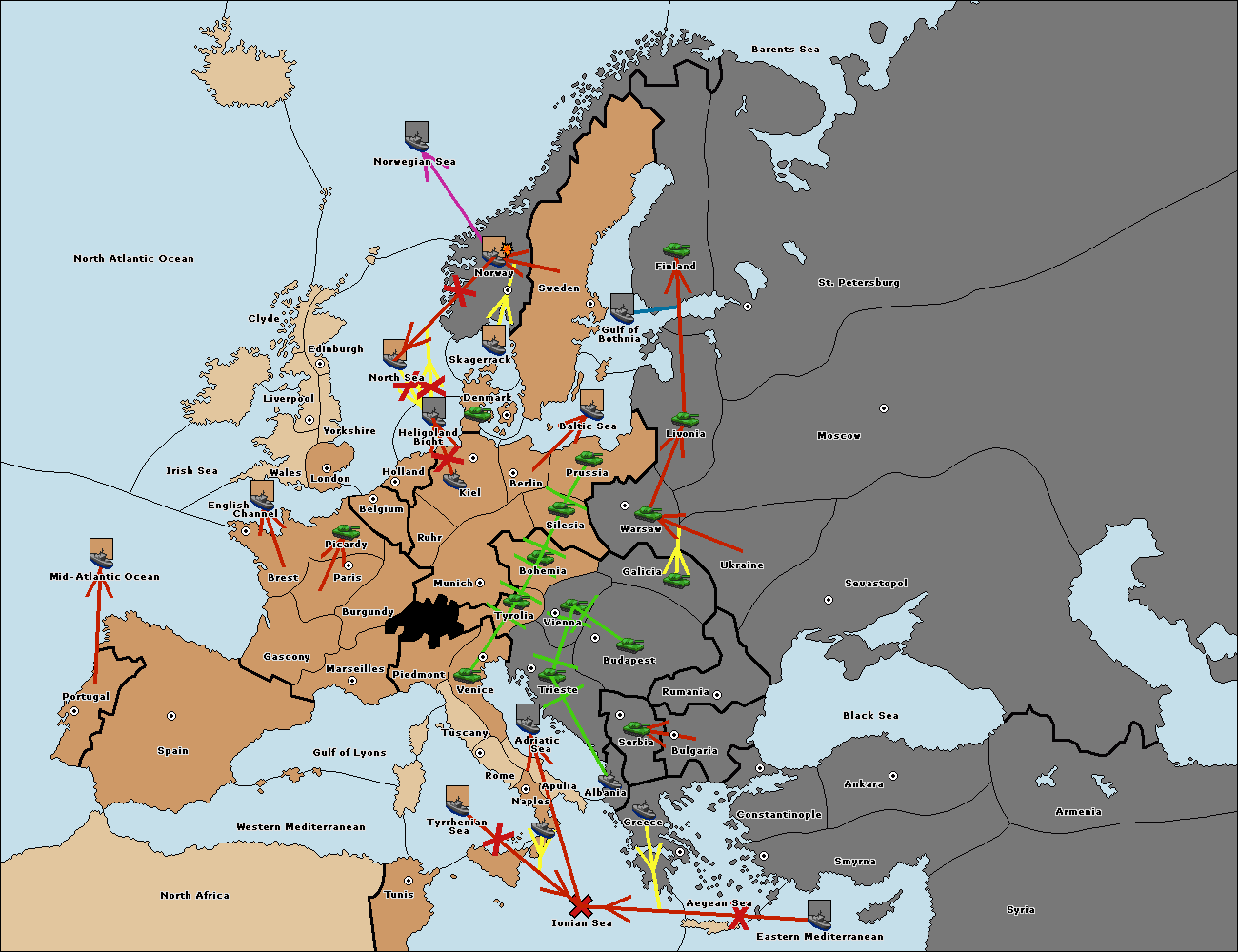 The fleet at Tunis support move to Ionian Sea from Naples.