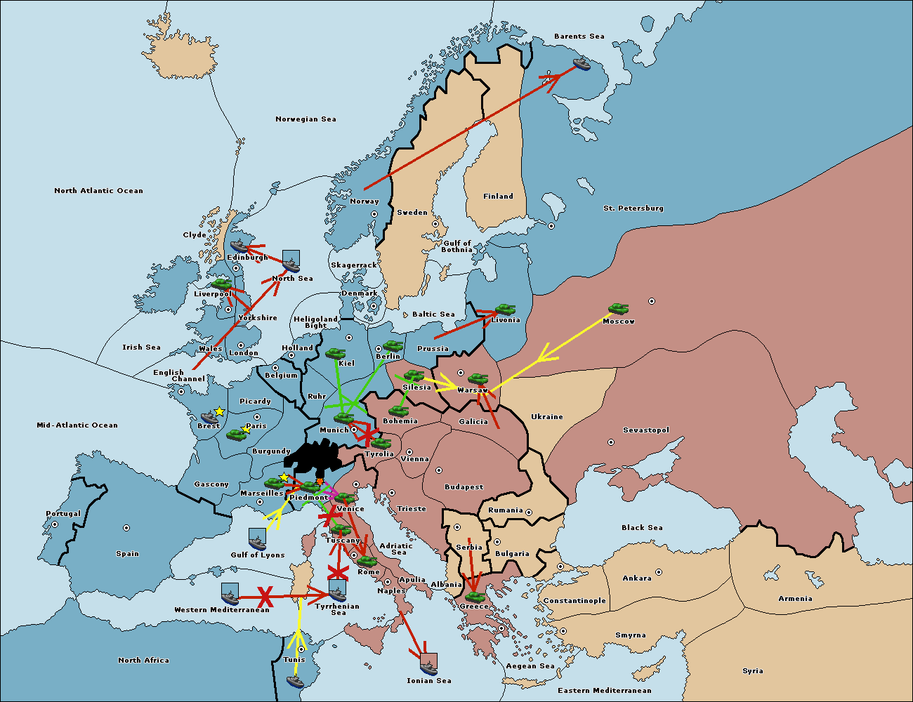 The fleet at Gulf of Lyons move to Tyrrhenian Sea.