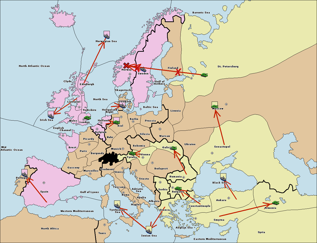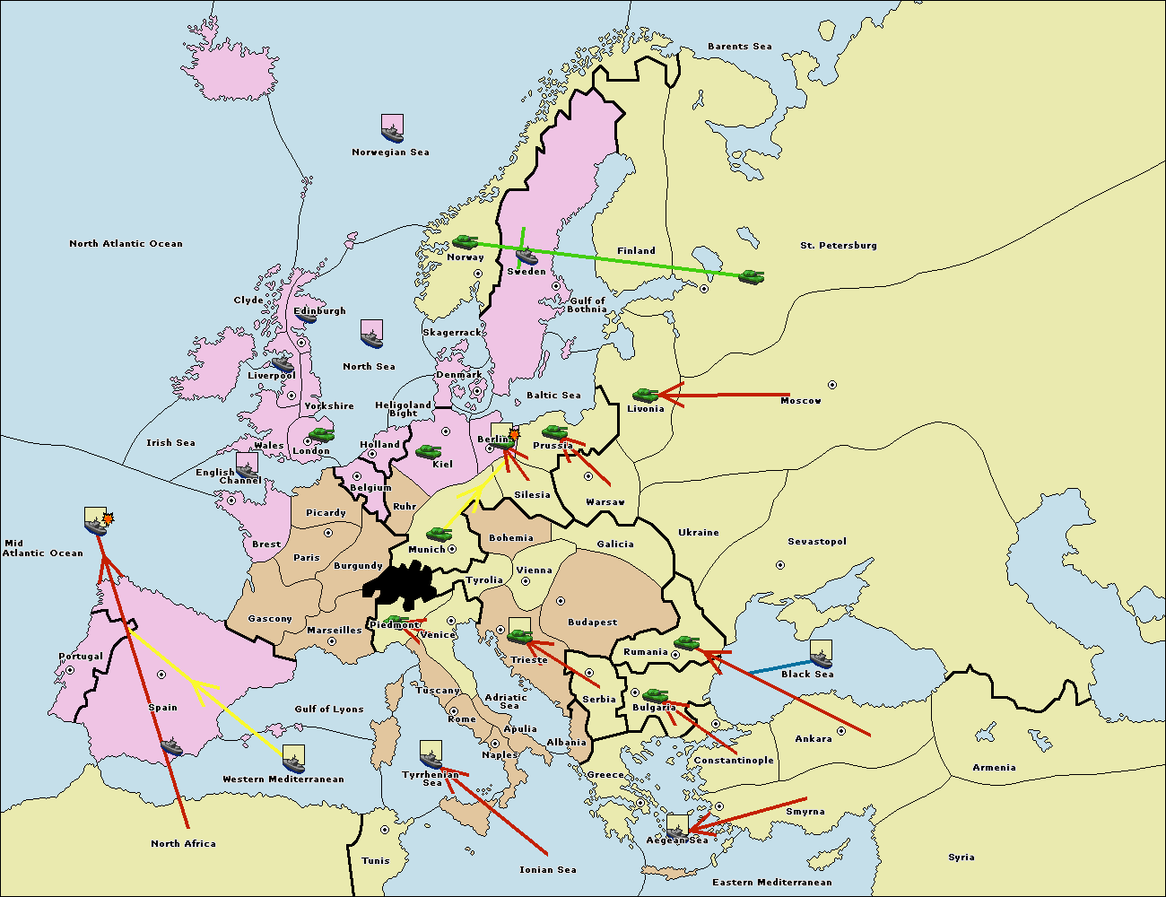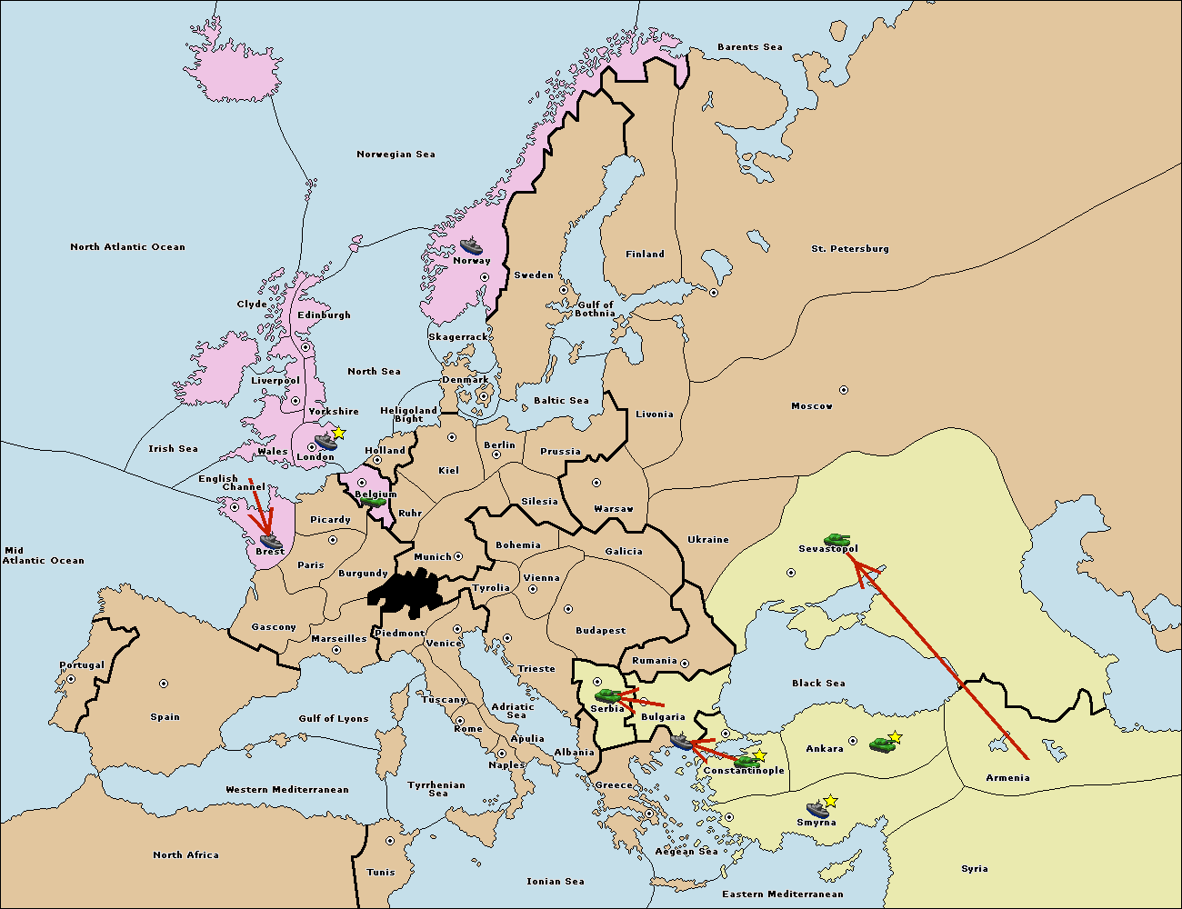 The fleet at Bulgaria (South Coast) move to Greece.
