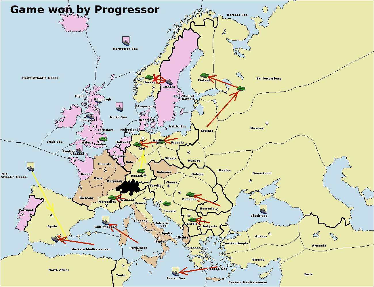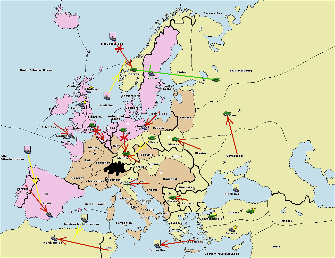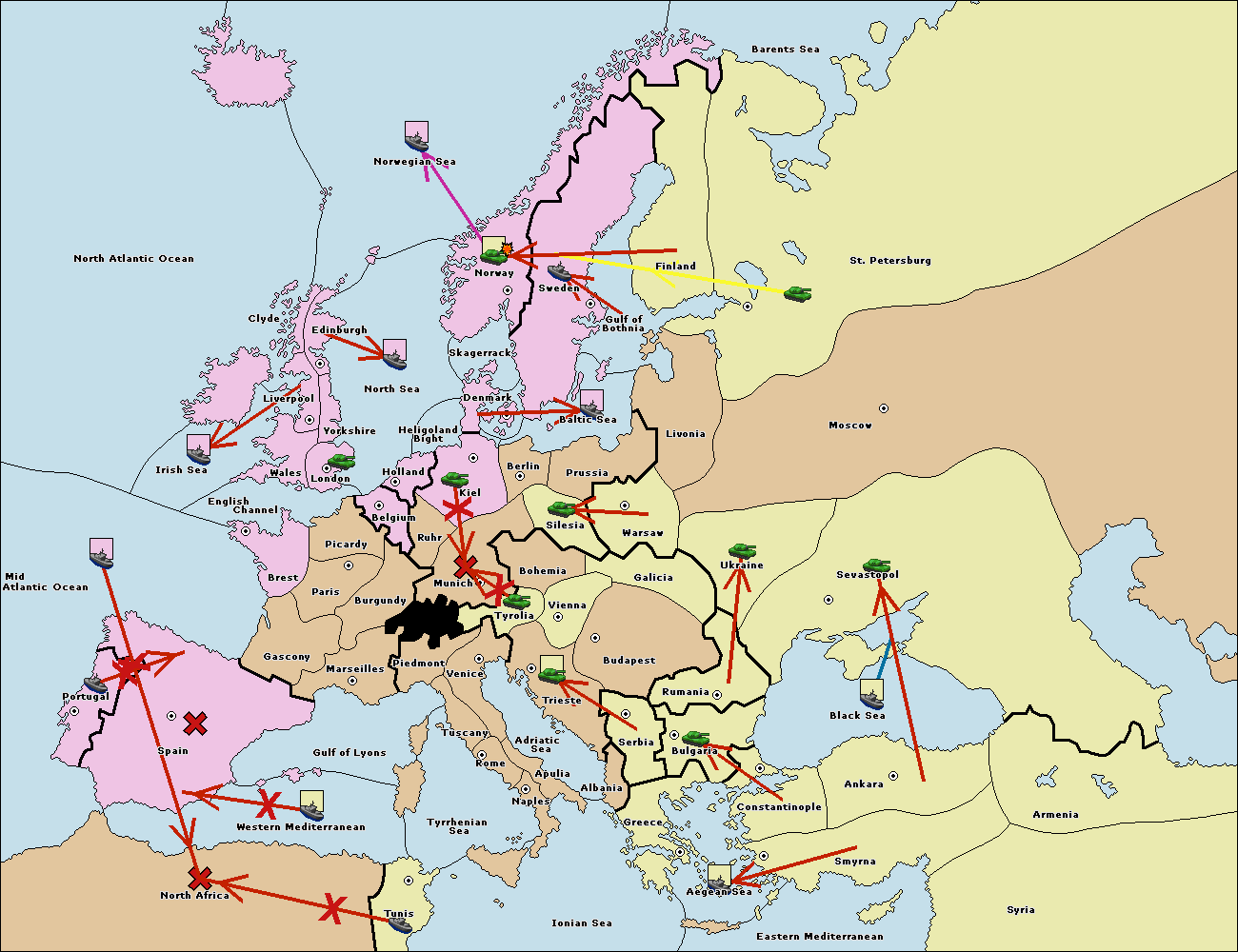The fleet at Bulgaria (South Coast) move to Greece.