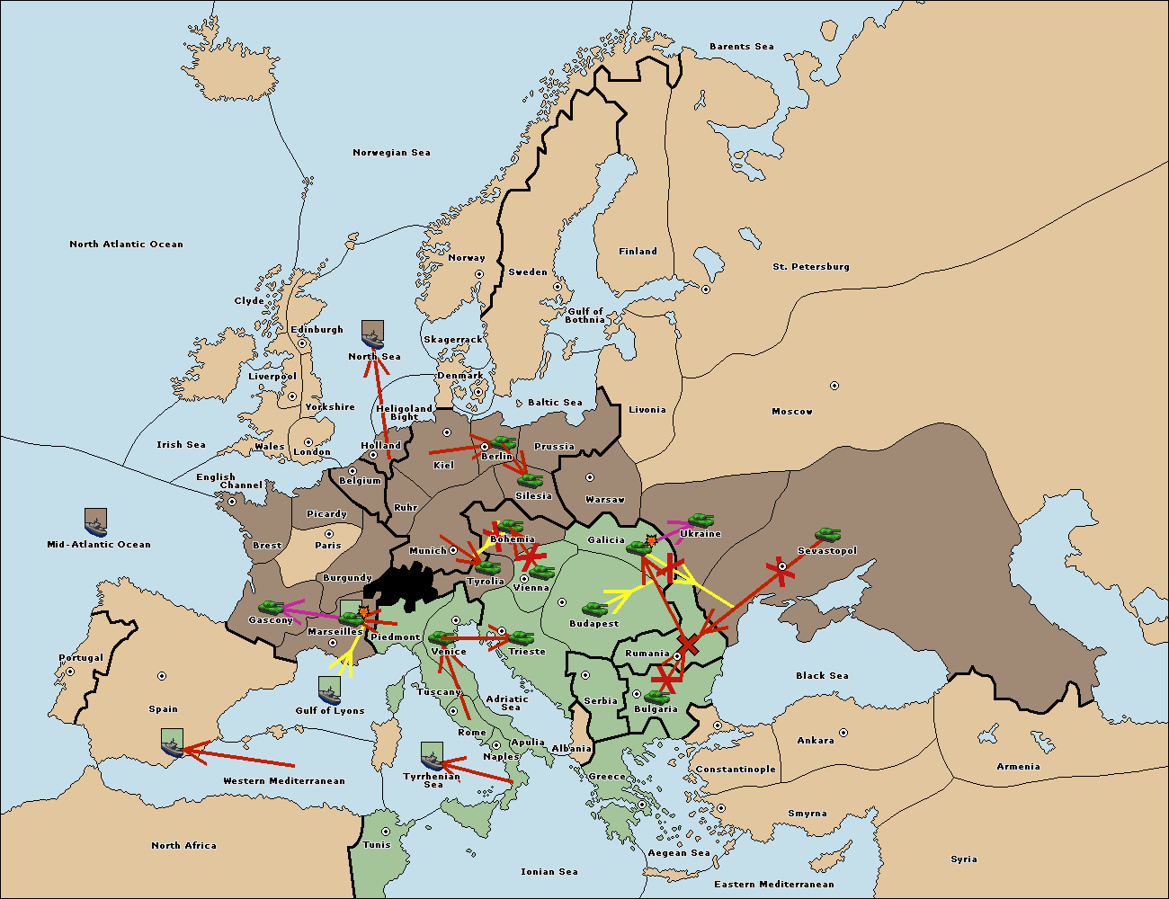 The fleet at Tyrrhenian Sea move to Gulf of Lyons.