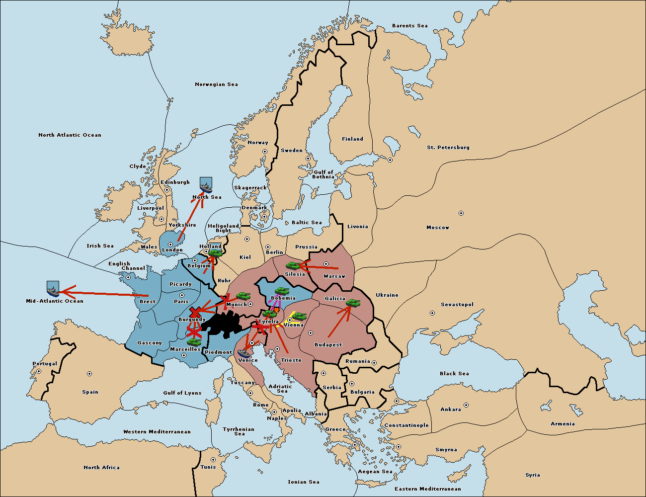The army at Tyrolia support move to Munich from Berlin.