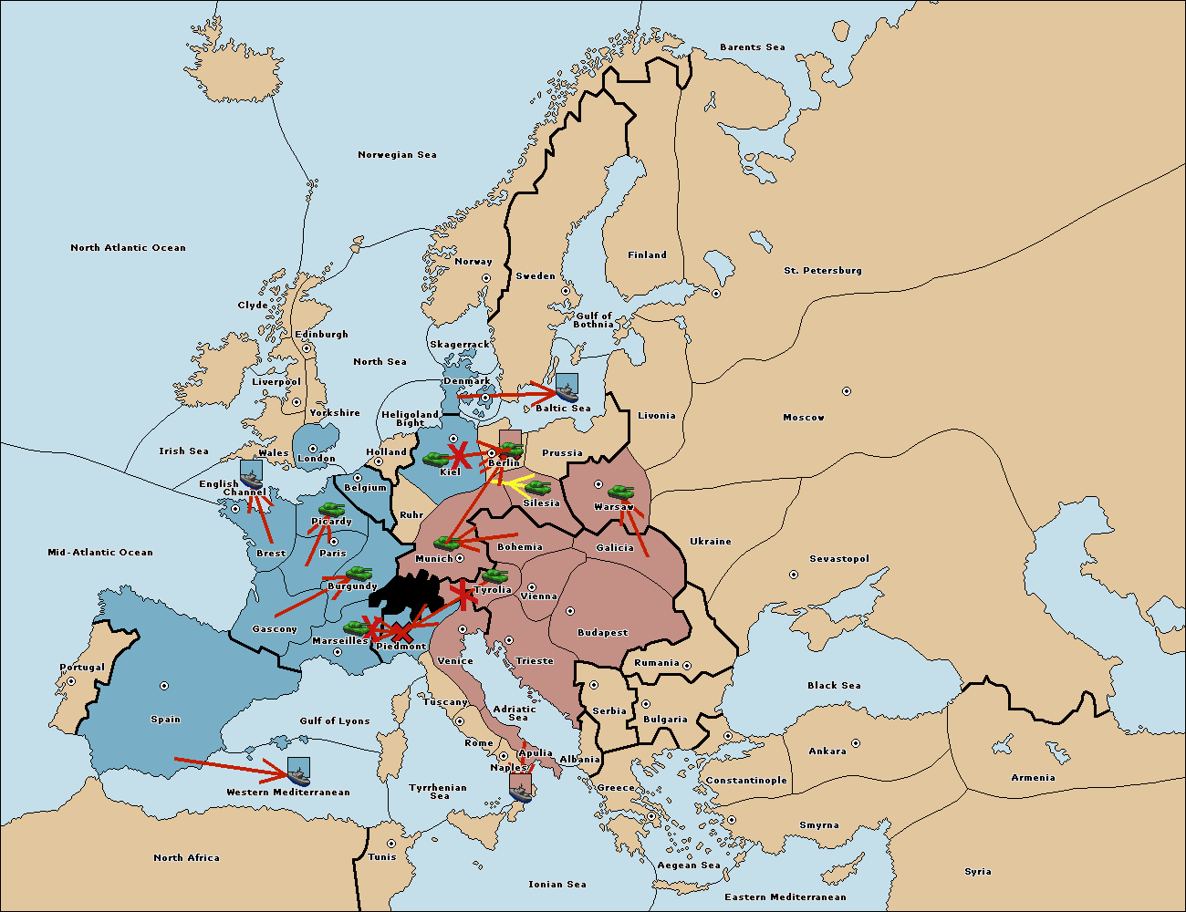 The fleet at Spain (South Coast) move to Western Mediterranean.