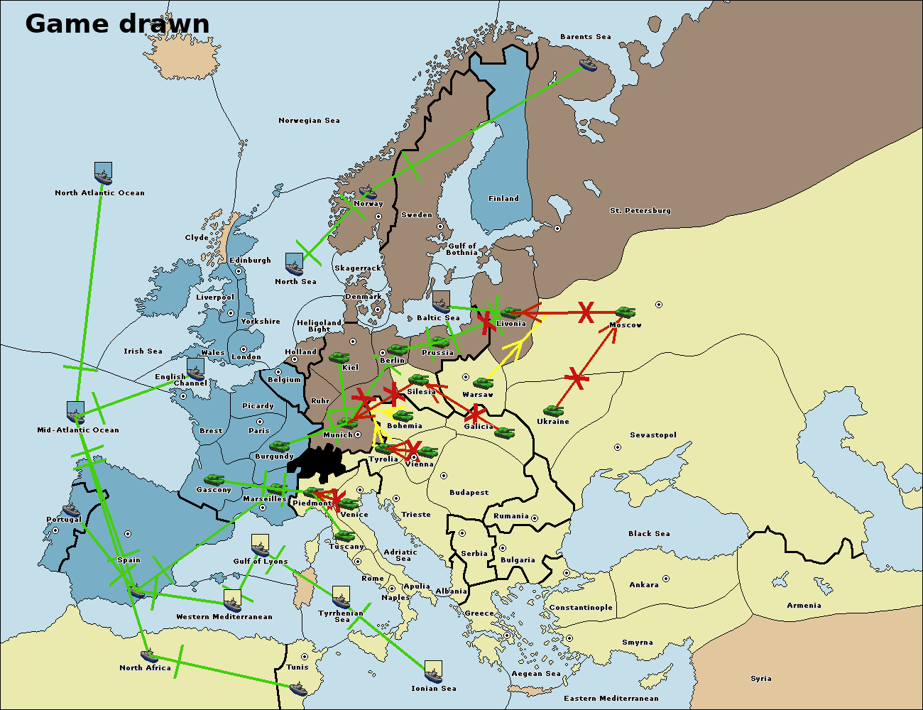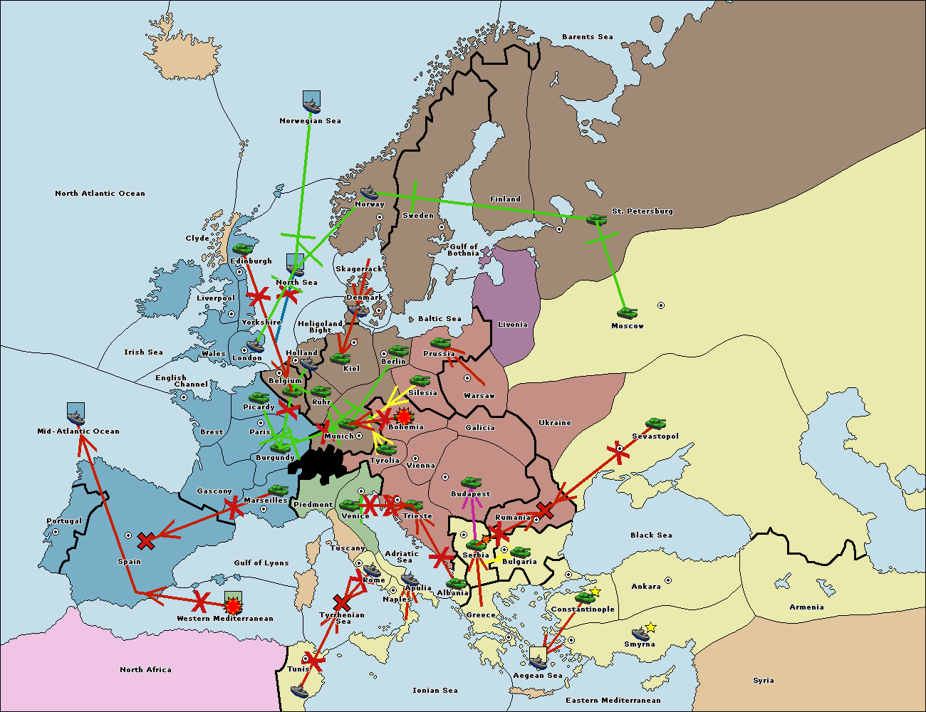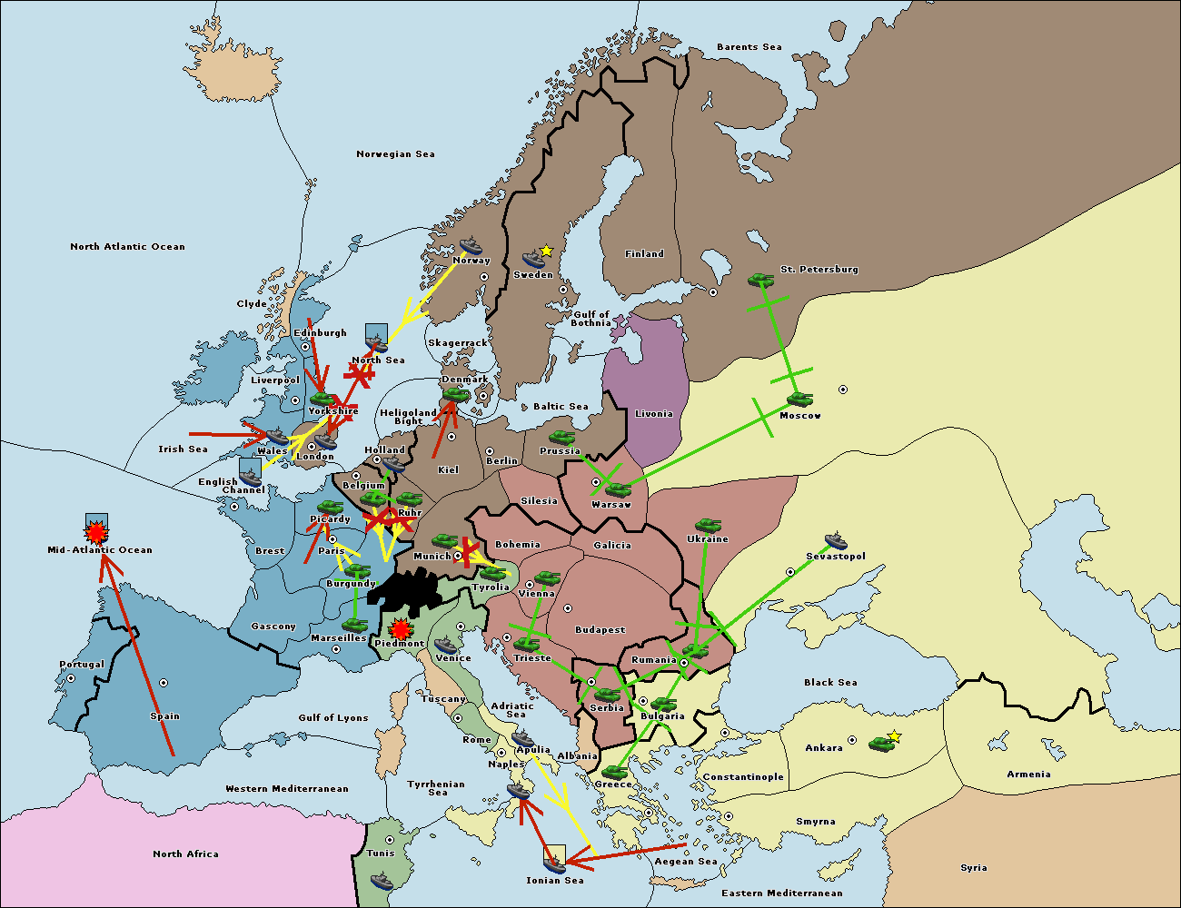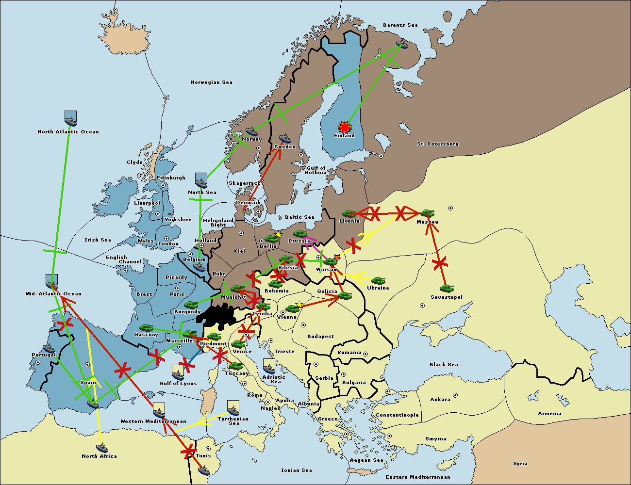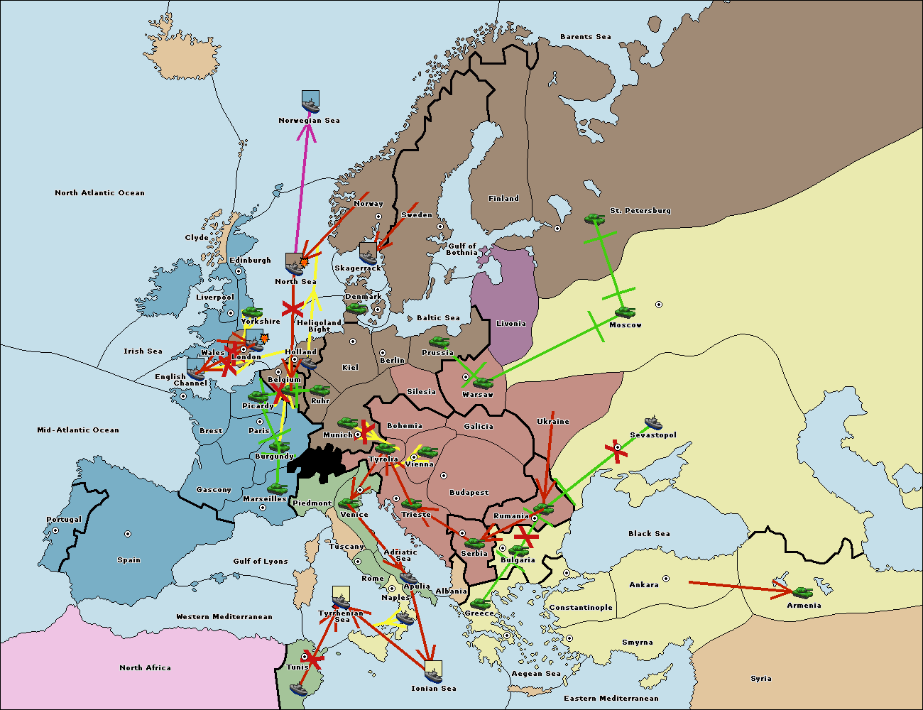 The fleet at Tyrrhenian Sea support move to Tunis from Ionian Sea.