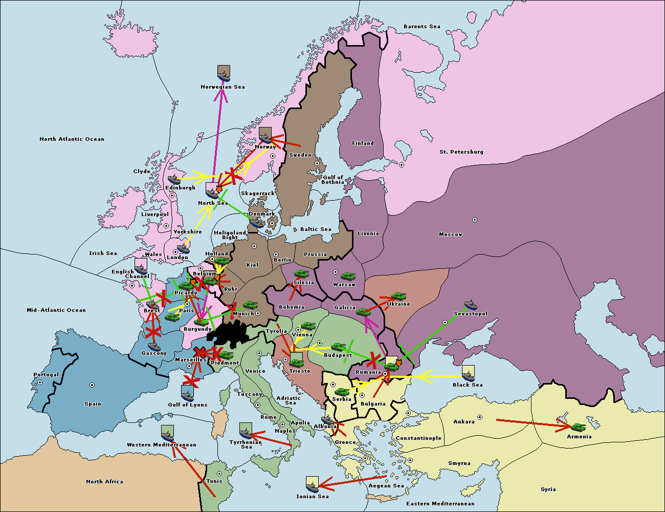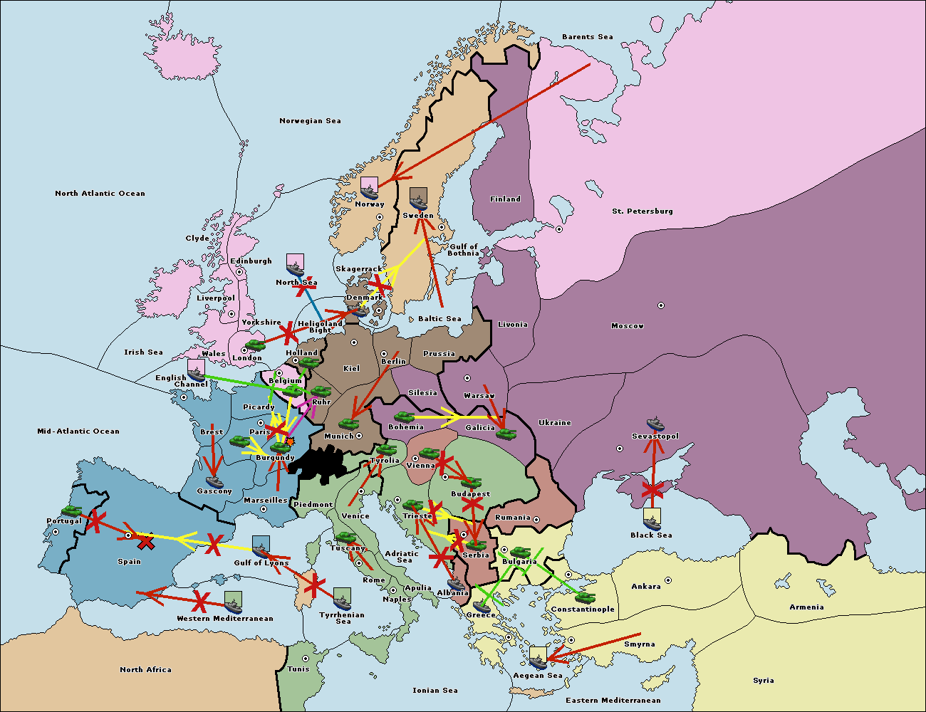 The fleet at Spain (South Coast) support hold to Marseilles.