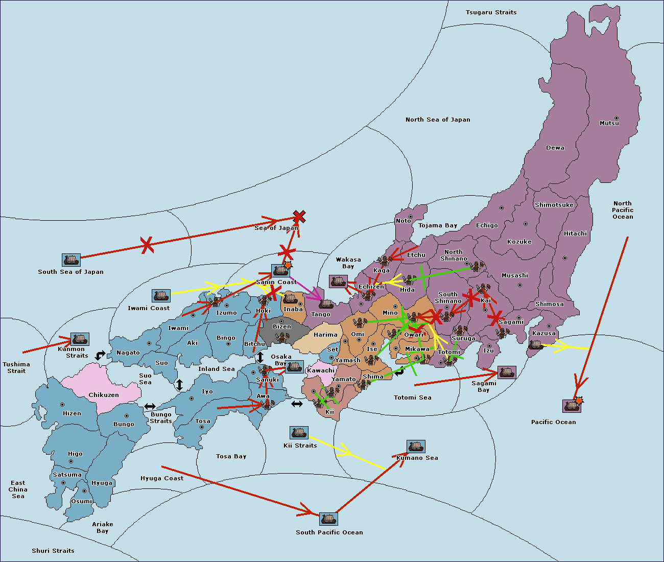 The fleet at South Sea of Japan move to Sea of Japan.