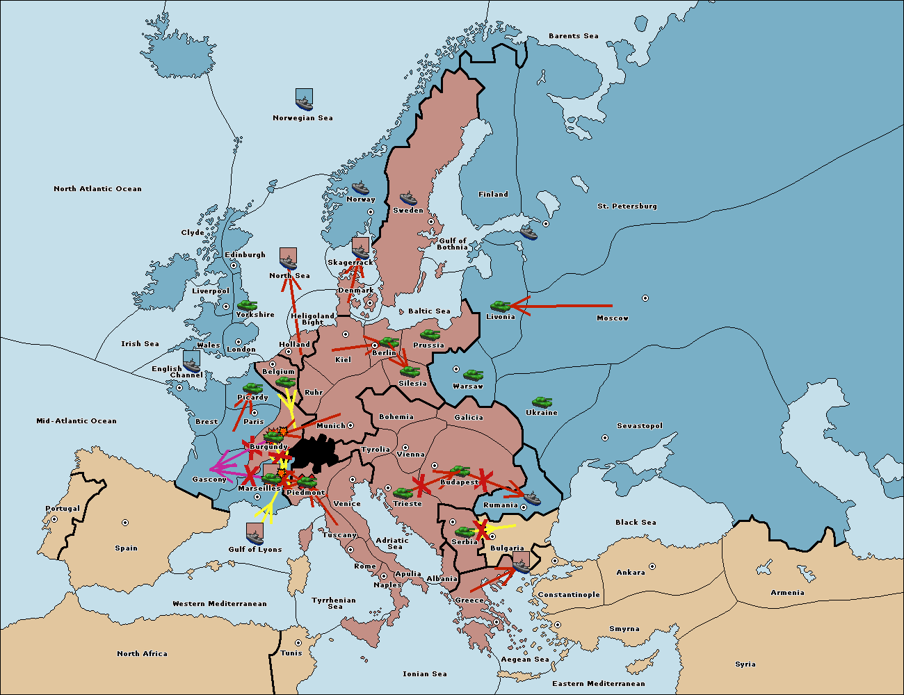The fleet at Gulf of Lyons support move to Marseilles from Piedmont.