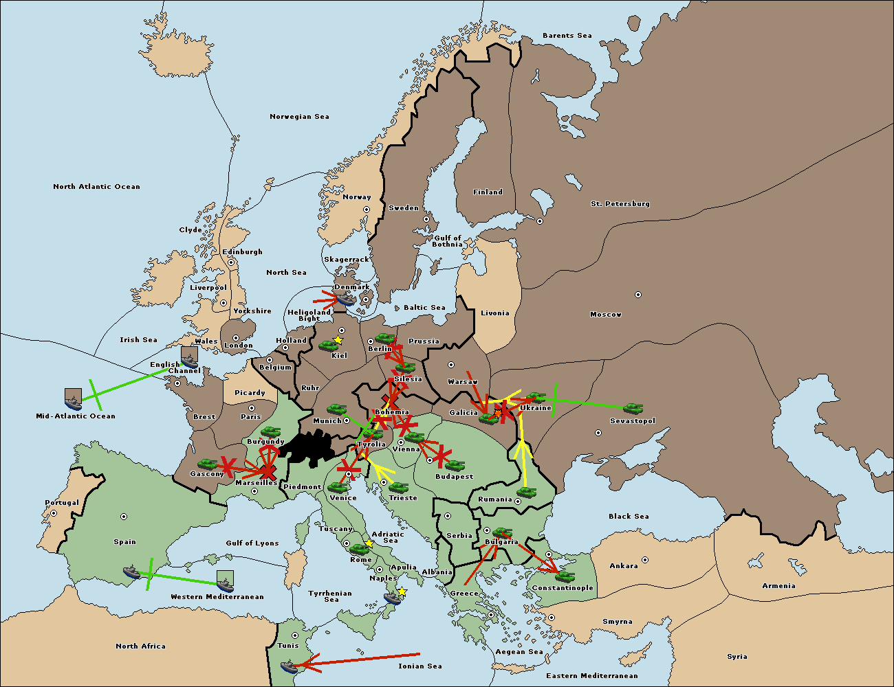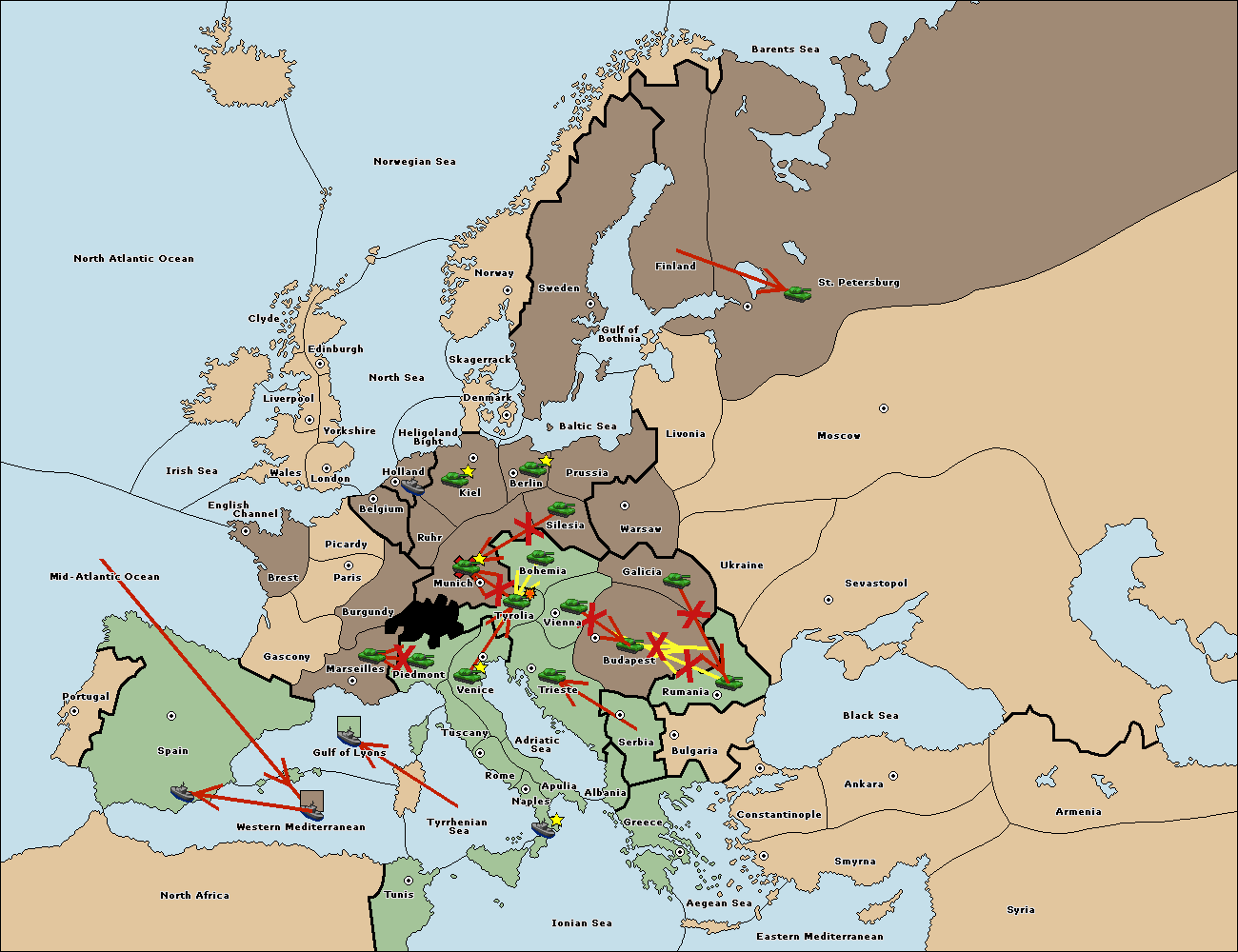 The fleet at Spain (South Coast) support move to Marseilles from Piedmont.