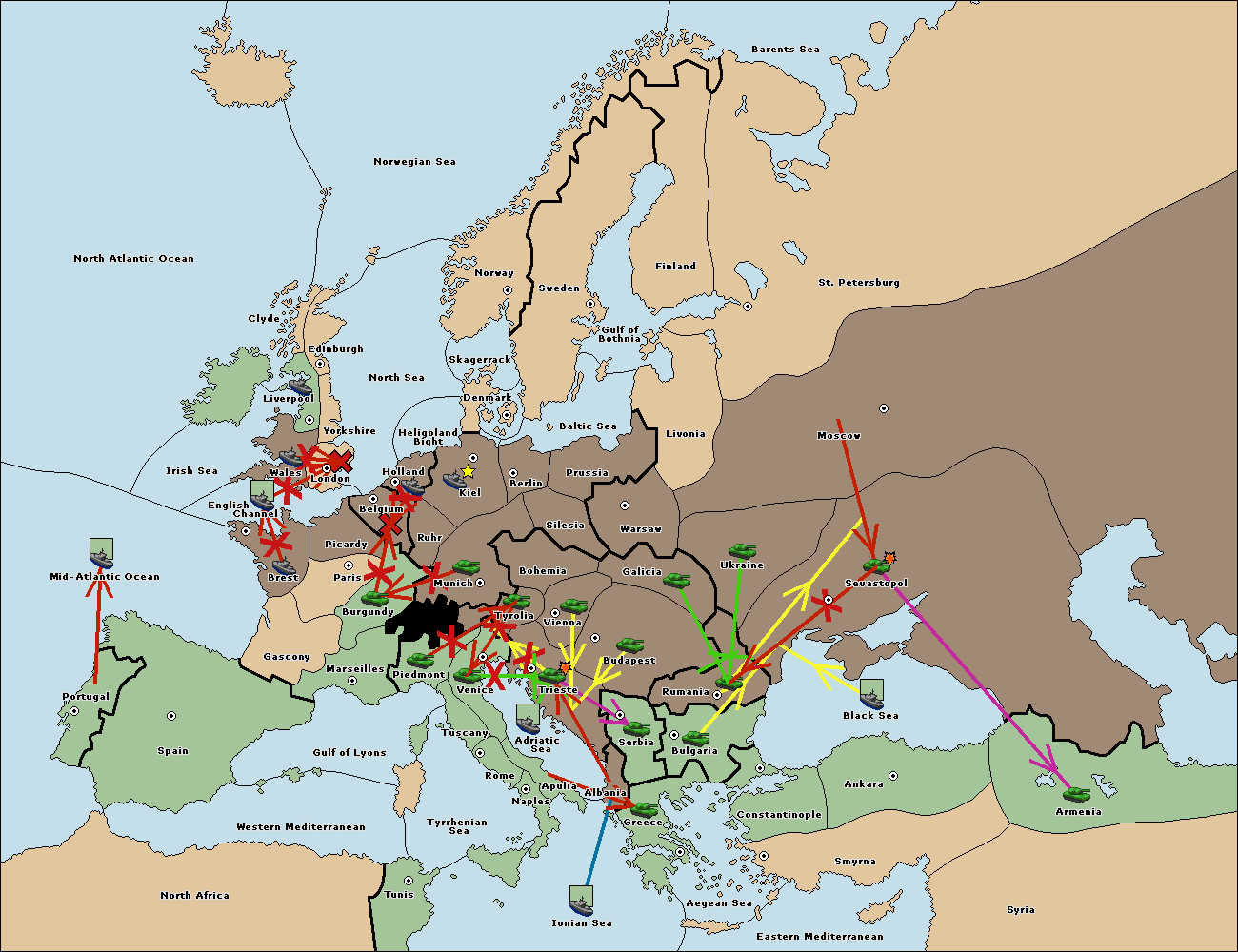The fleet at Mid-Atlantic Ocean move to Western Mediterranean.