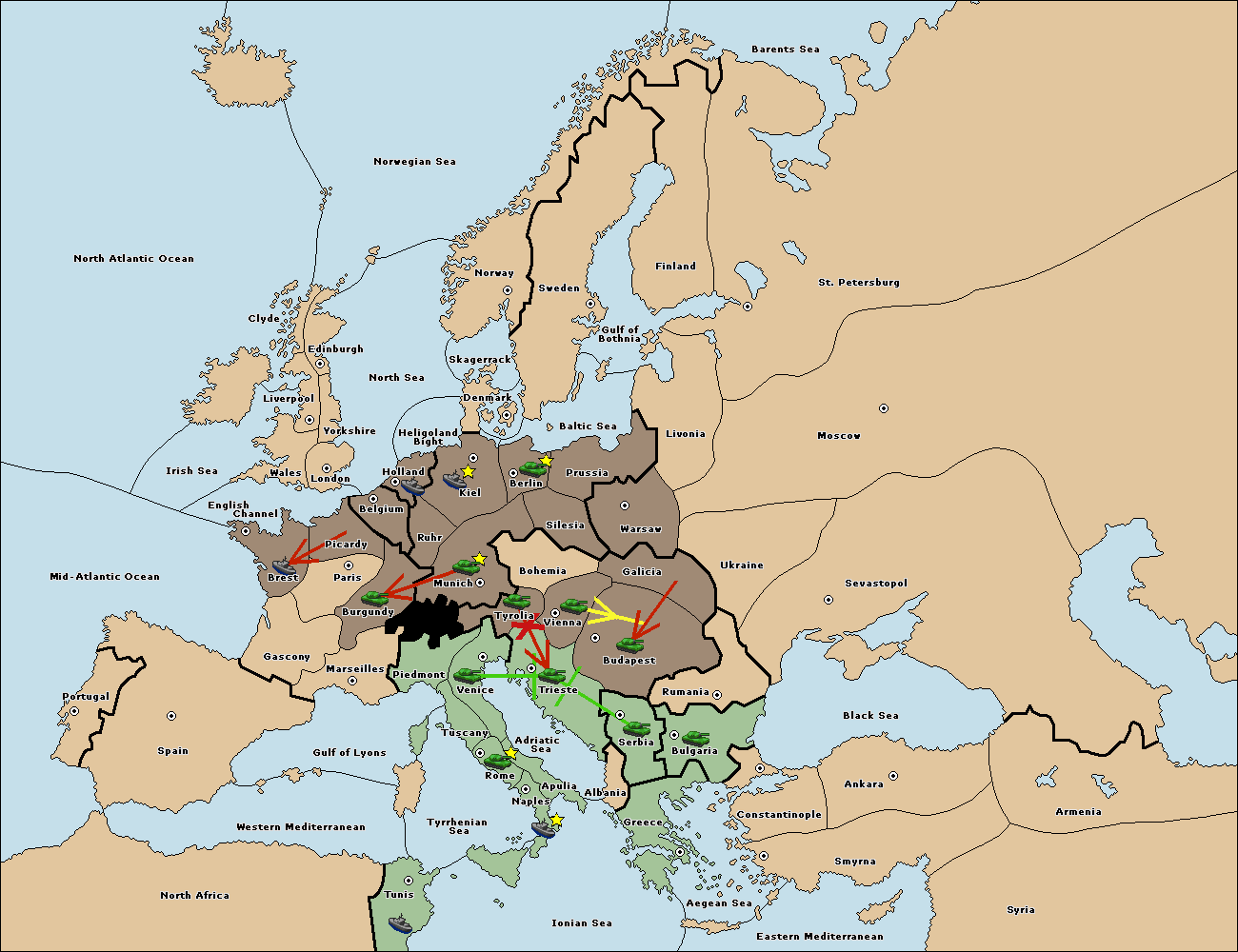 The fleet at Gulf of Lyons support move to Marseilles from Piedmont.