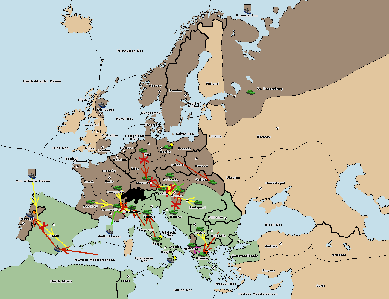 The fleet at Tyrrhenian Sea move to Gulf of Lyons.