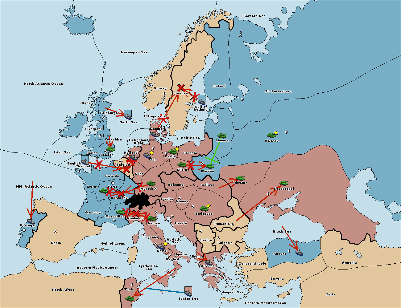 The fleet at Bulgaria (South Coast) move to Constantinople.