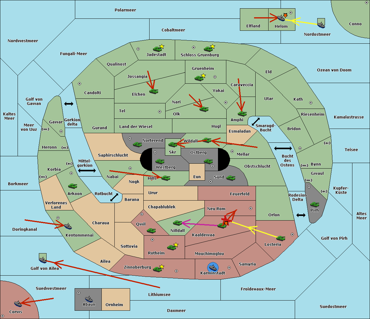 The fleet at Nordostmeer support move to Helom from Elfland.